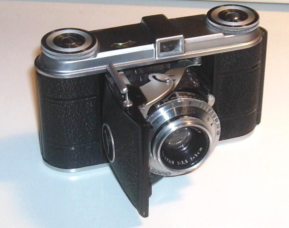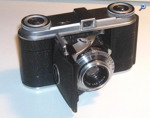 Das Besondere an dieser Kamera die ab 1939 angeboten wurde: sie ist tauglich sowohl für den Kleinbild- als auch für den 4 cm Rollfilm. Das wird ermöglicht indem die Filmlängensteuerung nicht über Zahnräder die in die Perforation beim Kleinbildfilm eingreifen, sondern über eine Reibrolle abgegriffen wird. Das System war nicht sonderlich genau, ab und zu kamen Durchrutscher vor was sich an unterschiedlichen Bildabständen im Negativ zeigte.