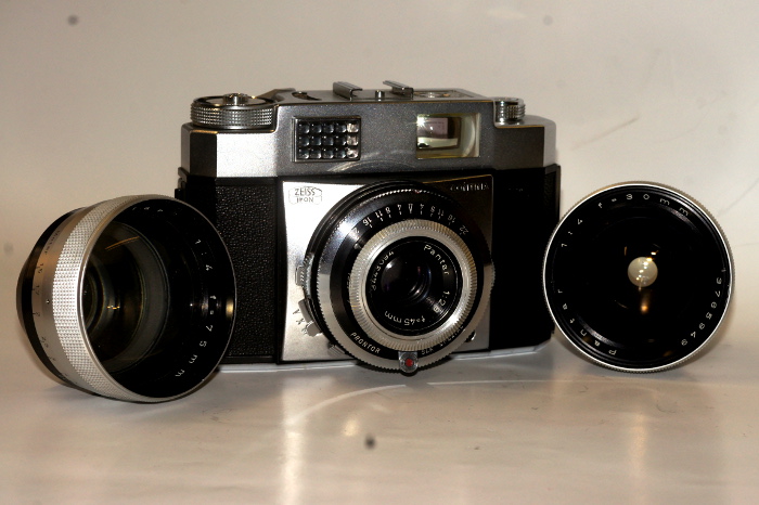 Aufstecksucher habe ich zwei andere: einen für den russischen Leica-Nachbau FED, der wie eine Rvolvertrommel aussieht für 5 Brennweiten und einen für eine Voigtländer Sucherkamera mit (Ich weiß nicht welche, es steht drauf "Voigltänder Turnit 3") 35, 50 und 100mm.