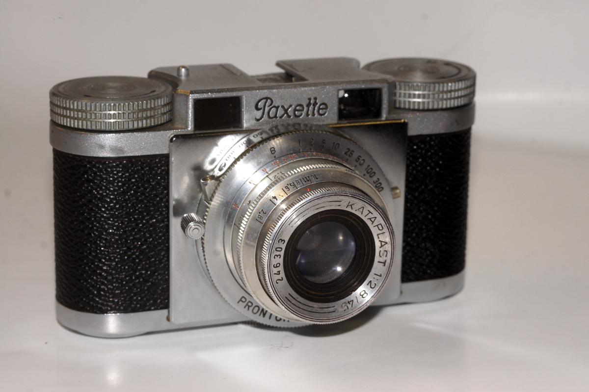 Diese Paxette muß ich noch auseinanderschrauben, da Verschluß und Auslöser blockiert sind, wie ich gerade bemerkt habe. Sie ist vermutlich die älteste Paxette, die ich besitze.