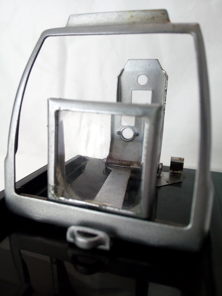 ich bin wiedermal auf den Sucher der Gomag Holly "gestolpert. Mir erschließt sich (noch) nicht der drei-teilige Aufbau, teilweise mit Linsenstrukturen. Habe im WWW auch nichts weiter dazu gefunden. Insbesondere das vorderste Rahmenteil erscheint mir ungewöhnlich. Sind das vielleicht zwei verschachtelte Sucher? Denn das hintere Teil hat drei Einblicke (mit und ohne Linse). Vielleicht auch ein Parallaxenausgleich für nahe Aufnahmen?
