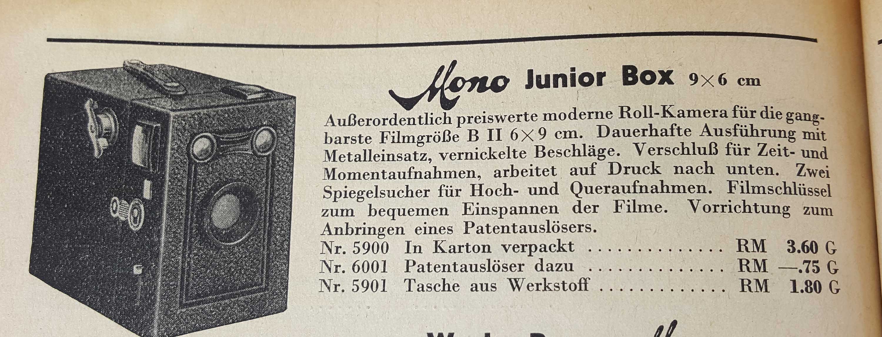An anderer Stelle wurde schon mal auf das Angebot dieser Boxkamera als „Mono Junior Box“ durch Rudolf Chasté hingewiesen: