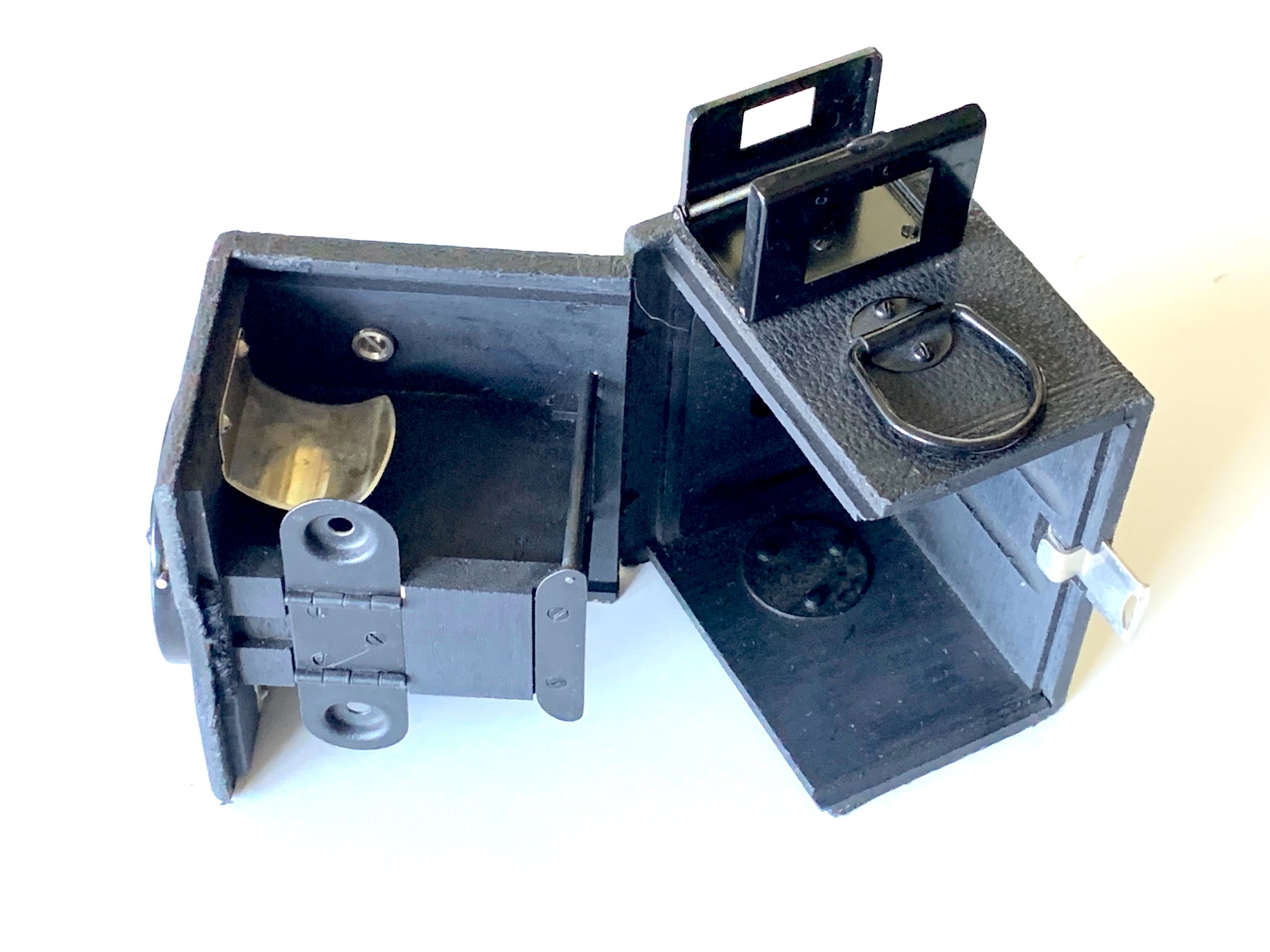 Die Kamera hat einen aufgesetzten Dosenverschluss mit ca. 1/25 Momentzeit sowie B und T, darin sitzt eine Meniskuslinse 12,5/4, es lassen sich noch zwei Lochblenden vorschwenken. Das Gehäuse besteht aus Holz, der vordere Teil ist zum Filmeinlegen ausklappbar. Zum Anvisieren dient ein ausklappbarer Rahmensucher.