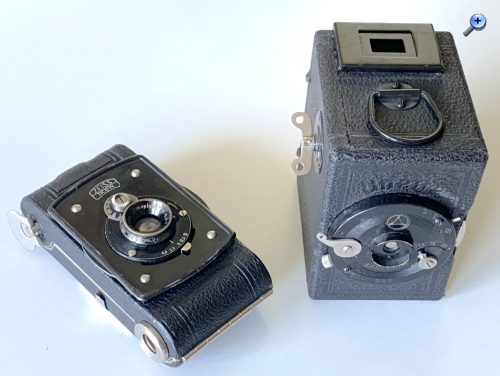 Auch im Vergleich mit dem Schwestermodell Bobette (hier in der an anderer Stelle vorgestellen Zeiss Ikon-Version) wirkt die Unette keineswegs so zierlich; als 'Kleinbildkamera' war eine Faltkamera sicherlich besser geeignet...