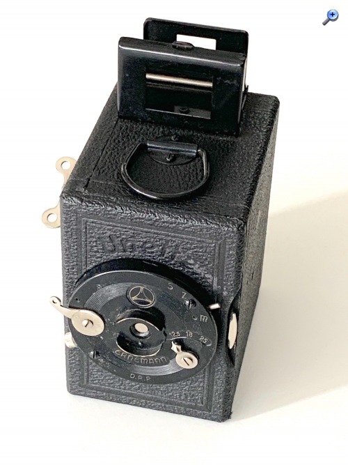 hier möchte ich die im Sammelfaden zur Liste der Rollfilmboxen bereits erwähnte Ernemann Unette 550 etwas näher vorstellen. Es handelt sich um eine Boxkamera für einen speziellen Kinofilm mit Rückpapier, das Aufnahmeformat beträgt 22x31 mm.