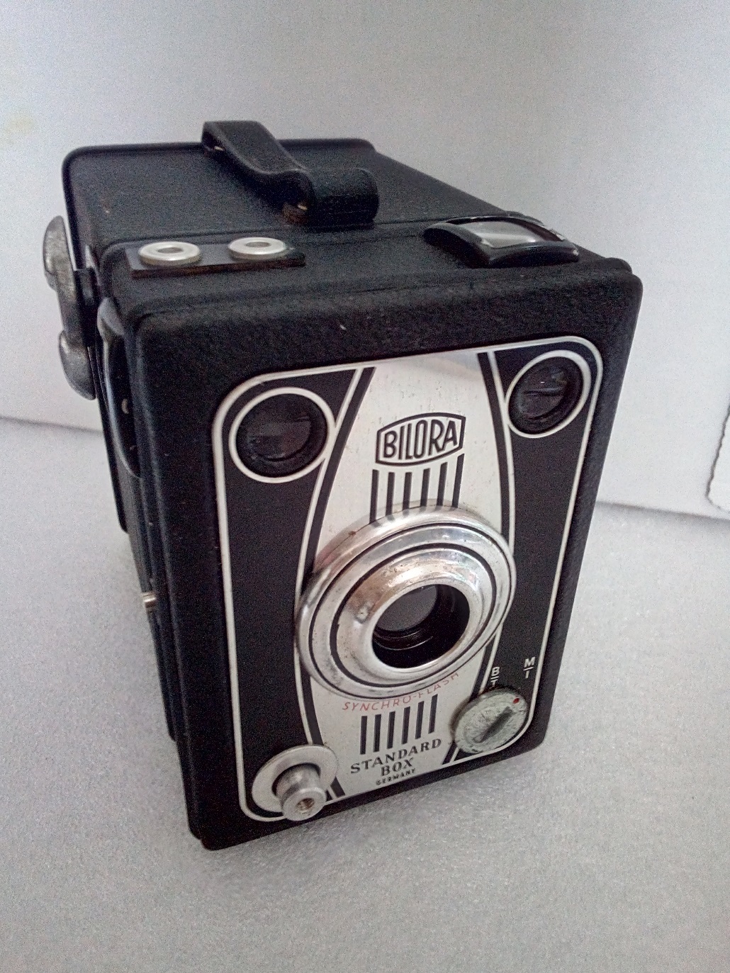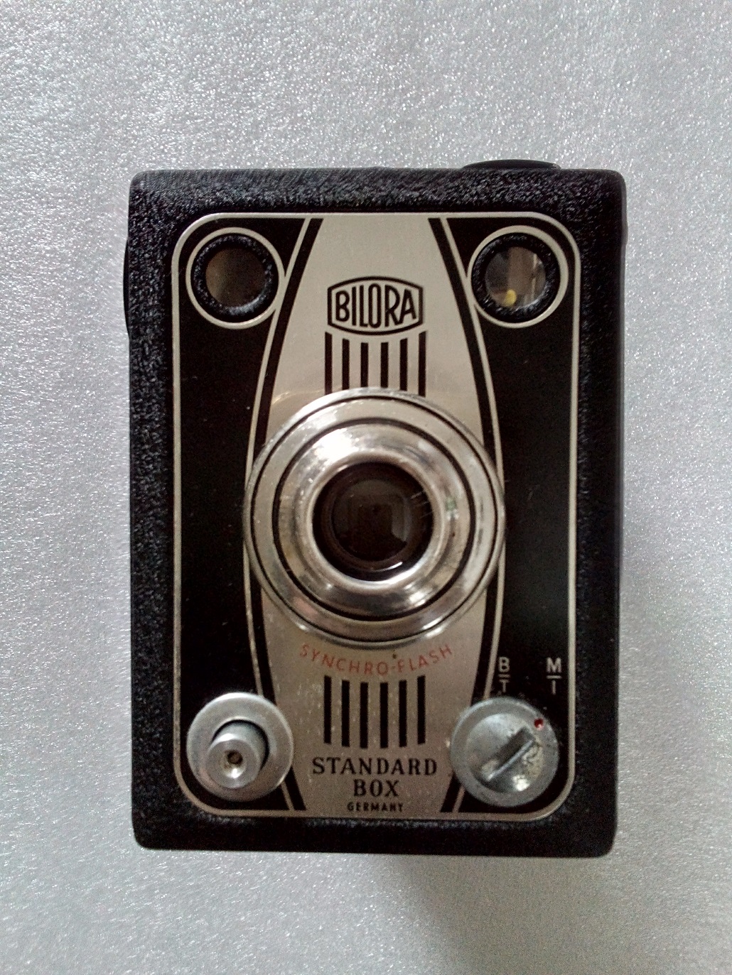 Hersteller: Bilora Typ: Rollfilm 120 Box-Kamera 6 x 9 Baujahr: 1954 - 1958 Objektiv: Meniscuslinse mit Fixfokus 1:11 Verschluss: Einfachverschluss mit "B" und "M" Blitzkontakte (es gab auch Ausführungen mit einem Blitzschuh) Drahtauslöseranschluß Sucher für Hoch- und Querformat