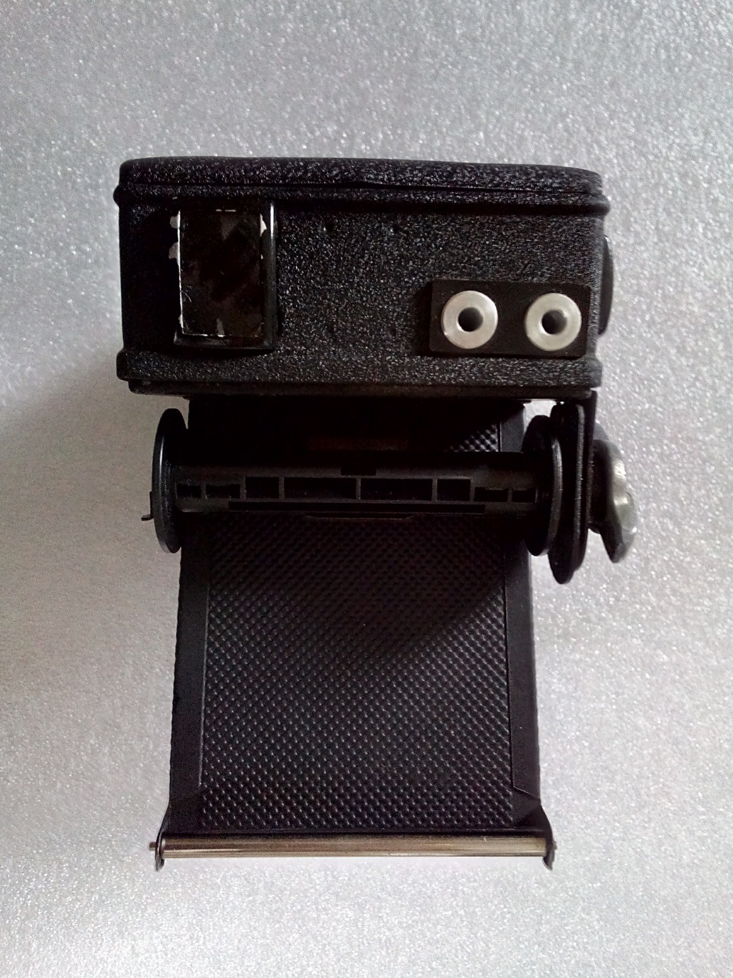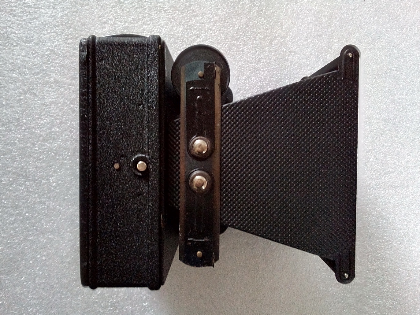 Bei dieser Box-Kamera muss zum Filmwechsel das komplette Heckteil abgenommen werden.