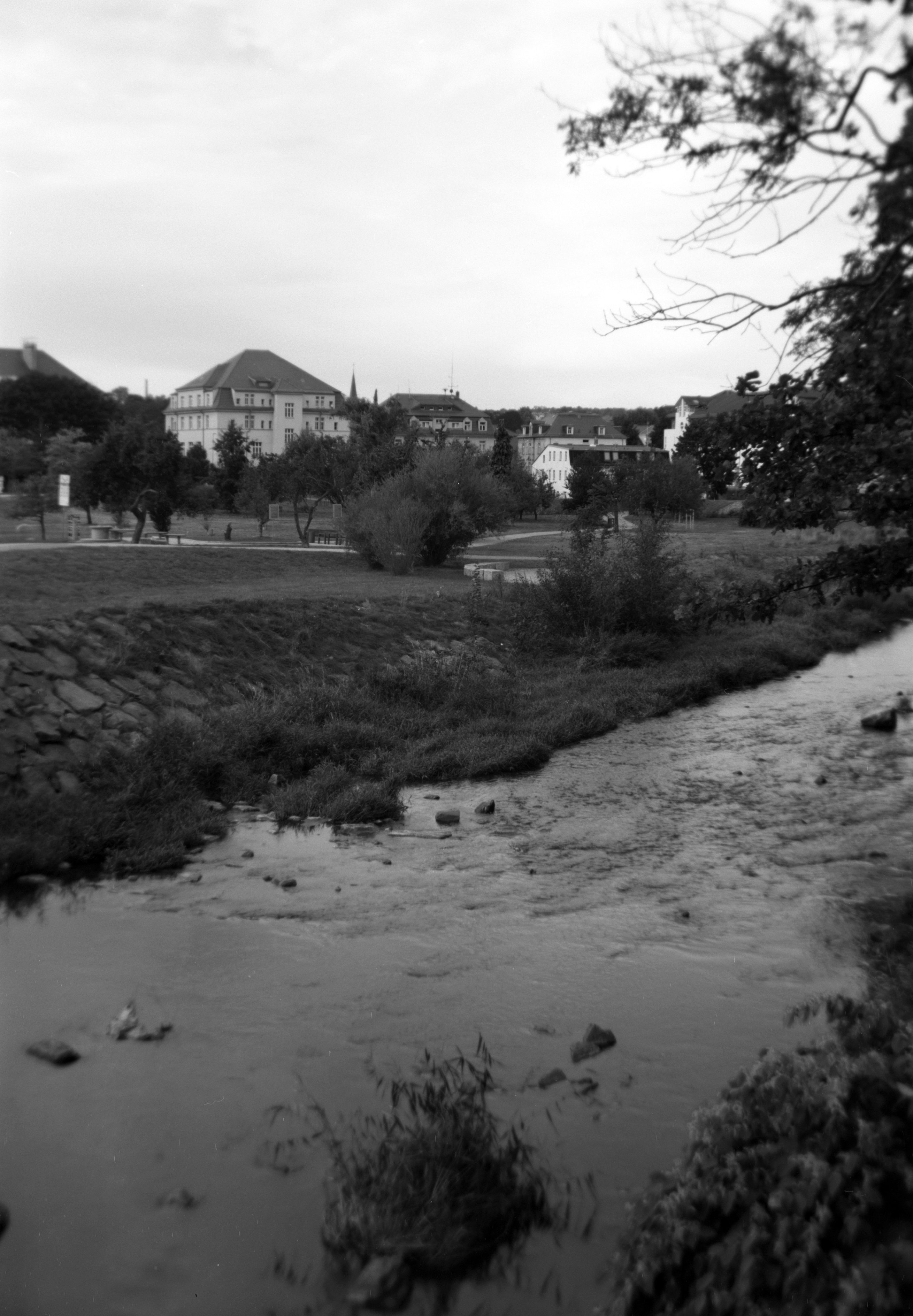 Und hier noch ein Bild mit einem schlecht gelagerten, 20 Jahre abgelaufenen Ilford FP4. Die Beschriftung des Filmschutzpapiers findet sich auf dem Bild wieder.