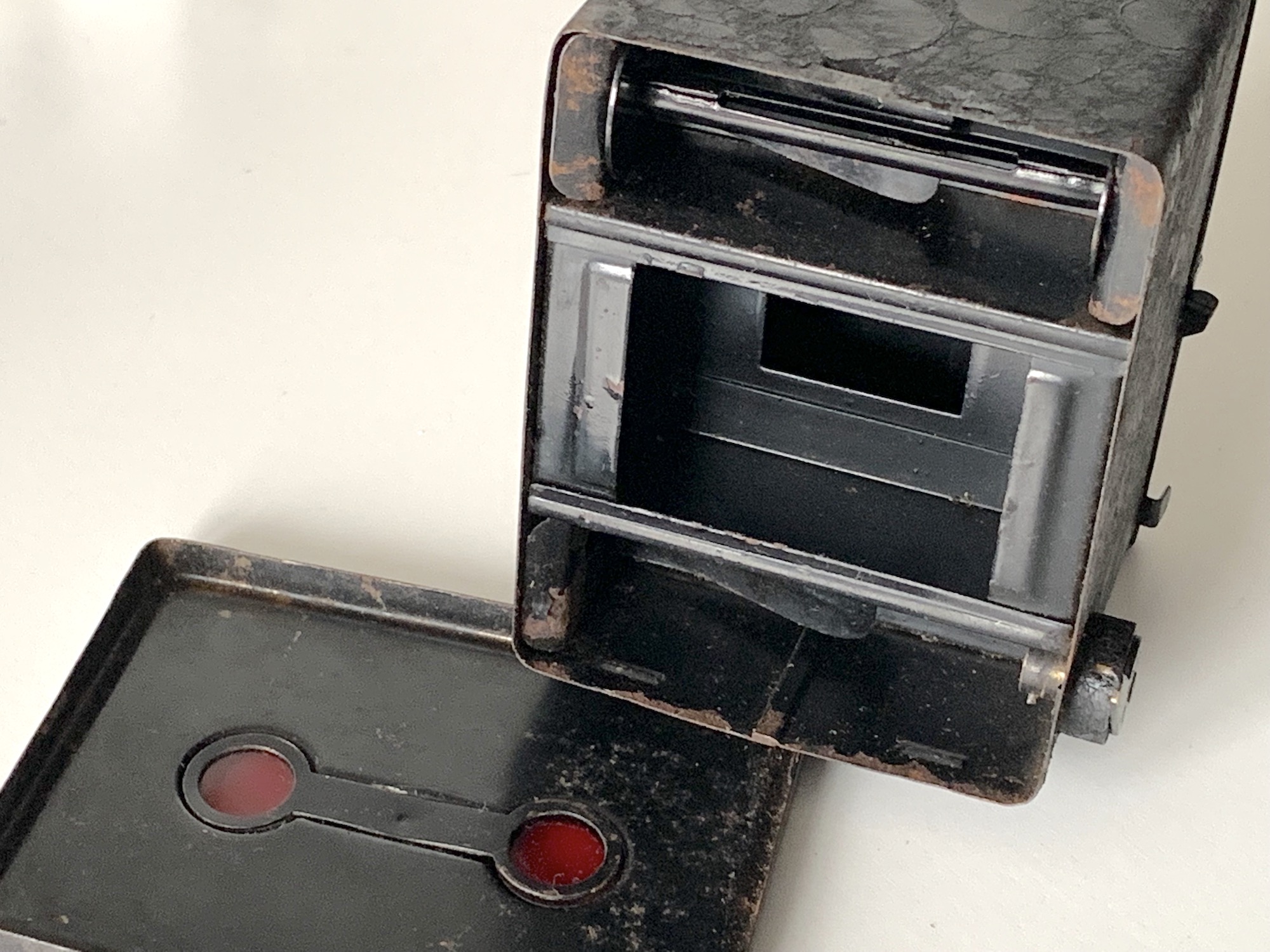 Über die 3x4-Box ist in der Literatur wenig zu finden. Kadlubek führt sie (FIA0040) und nennt als Produktionsjahr 1925; die gleiche Information findet sich bei McKeown. Das wäre insofern eine Besonderheit, als das 3x4-Format nach üblicher Lesart erst 1930 mit der Baby-Box Tengor eingeführt wurde. Kadlubek gibt aber auch an, die Kamera besitze keinen Sucher, was nicht stimmt – da bin ich mir nicht sicher, wie zuverlässig die Angaben sind...