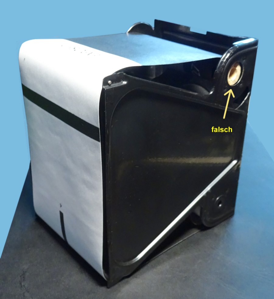 Der Bördelrand der Holzspule an den beiden Metall-End-Scheiben ist tiefer, das kann bei einigen Kameras der Holzkernspulen-Jahre zu Einsetzproblemen führen. Einige dieser Kameras tolerieren Plastikkenrspulen, andere nicht.