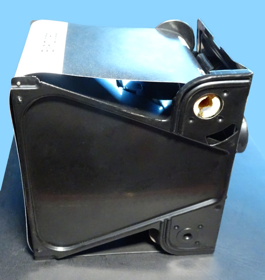 Ich will das Einlegen am Beispiel der Agfa Synchrobox (Box 600) zeigen, sinngemäß gilt das auch für die meisten anderen Rollfilmkameras für 120 Film-Typ. Allerdings hat die Synchrobox die Besonderheit, dass die gesamte Filmführungseinheit mit Objektiv aus der Kamera entnommen werden muss.