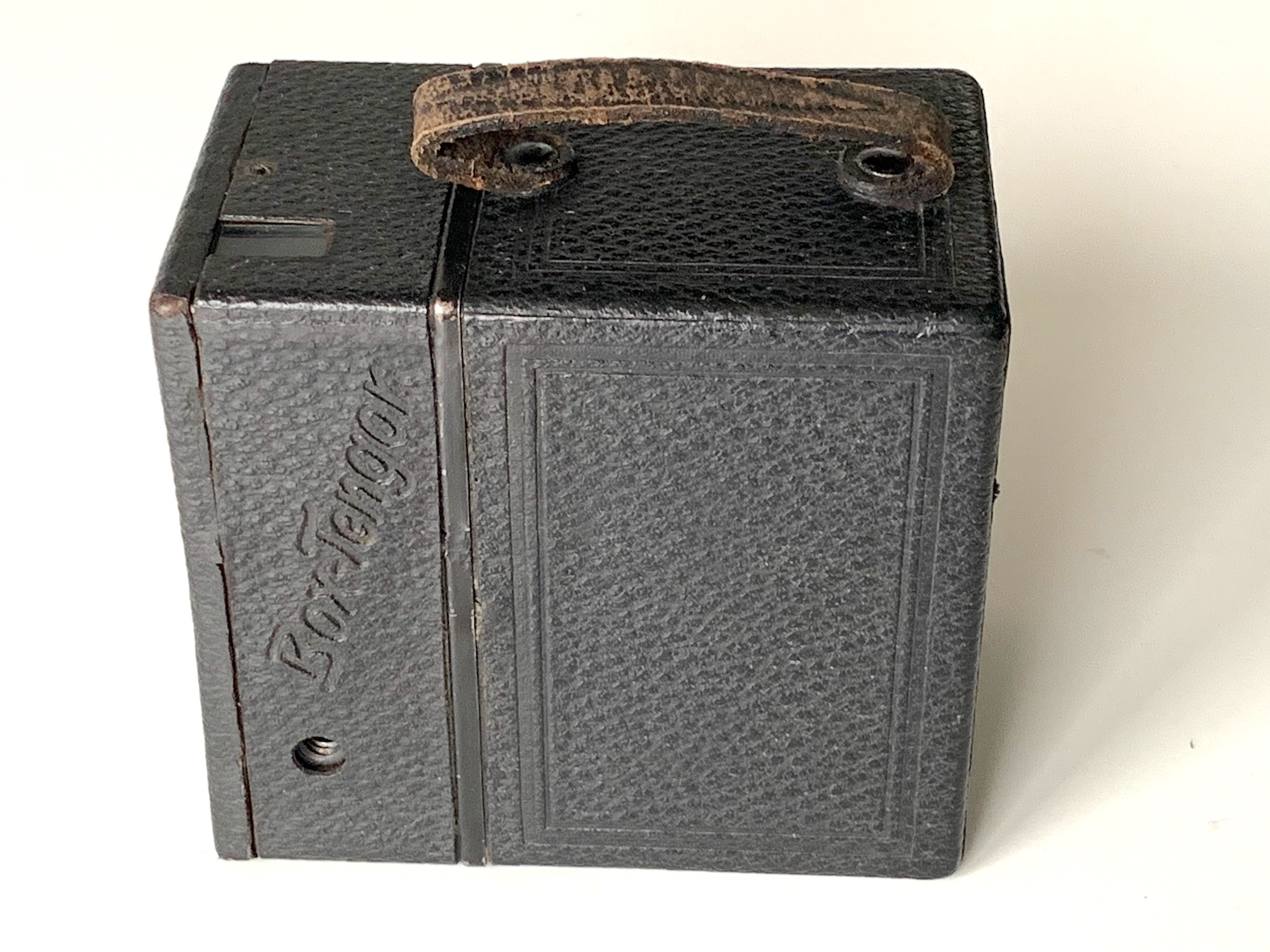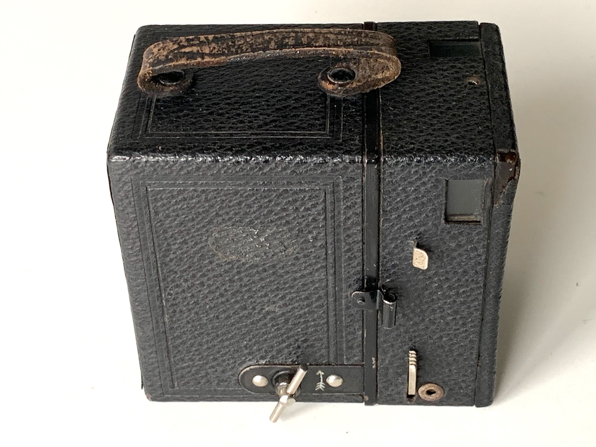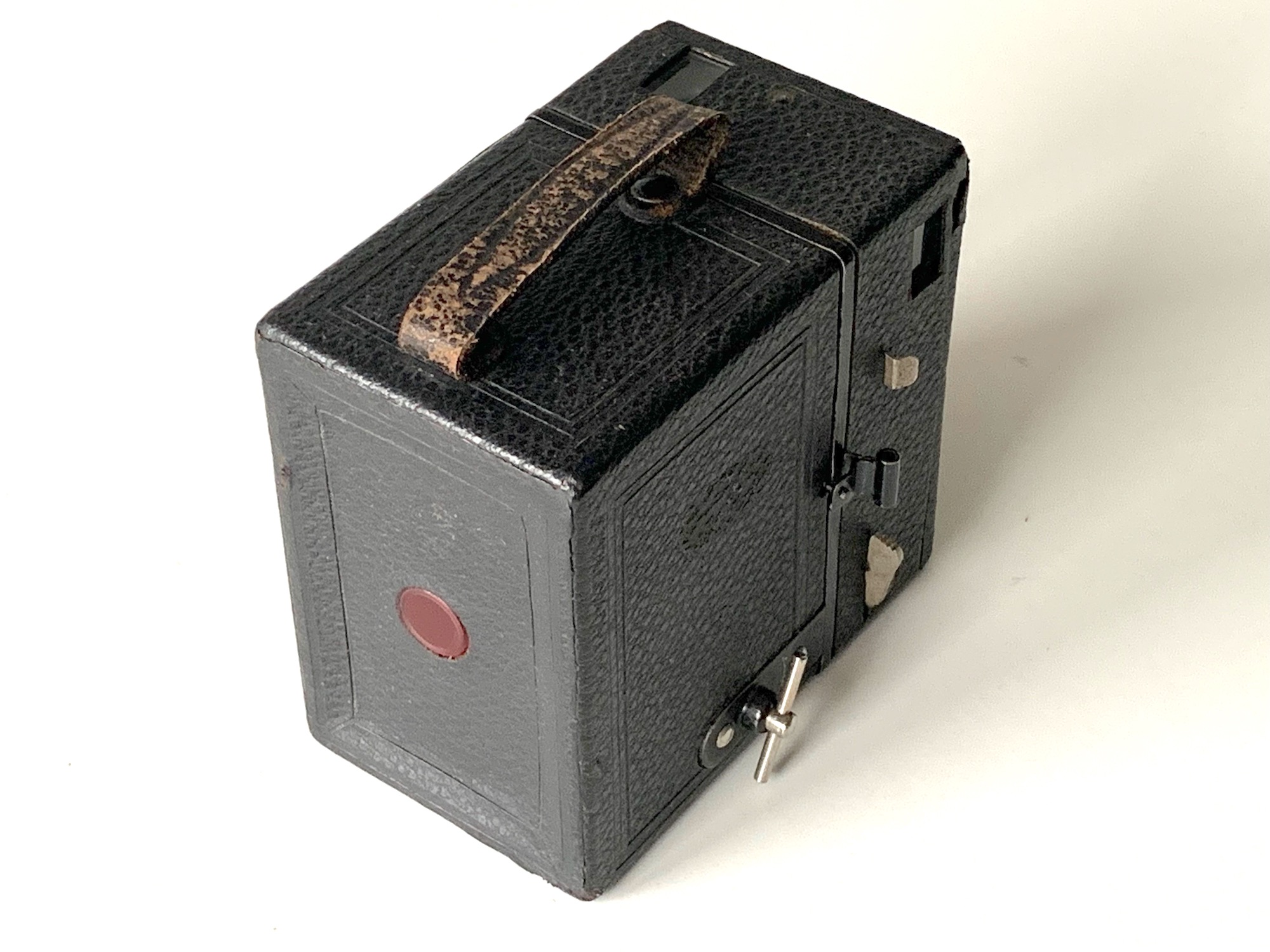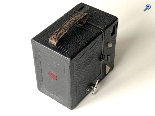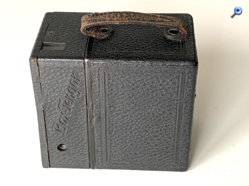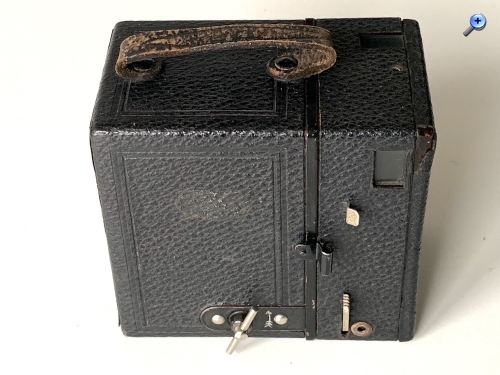 auf Seite 21 wird eine Box beschrieben Katalog Nr. 902 bis ca. 1926 diese Box weicht aber erheblich von deinem Bild ab Unterschiede: Sucherfenster senkrecht Filmfenster mittig Tragegriff= Drahtbügel (wie bei Goerz üblich)