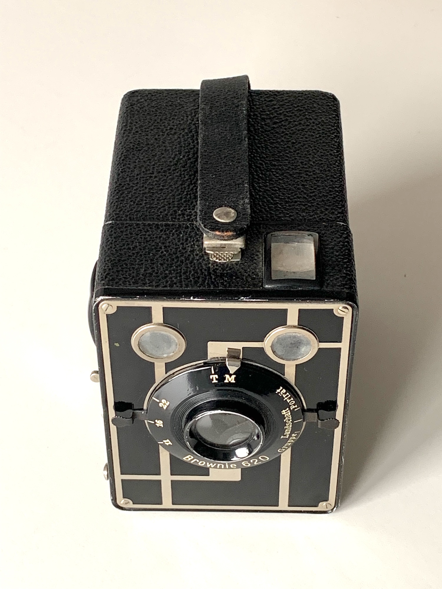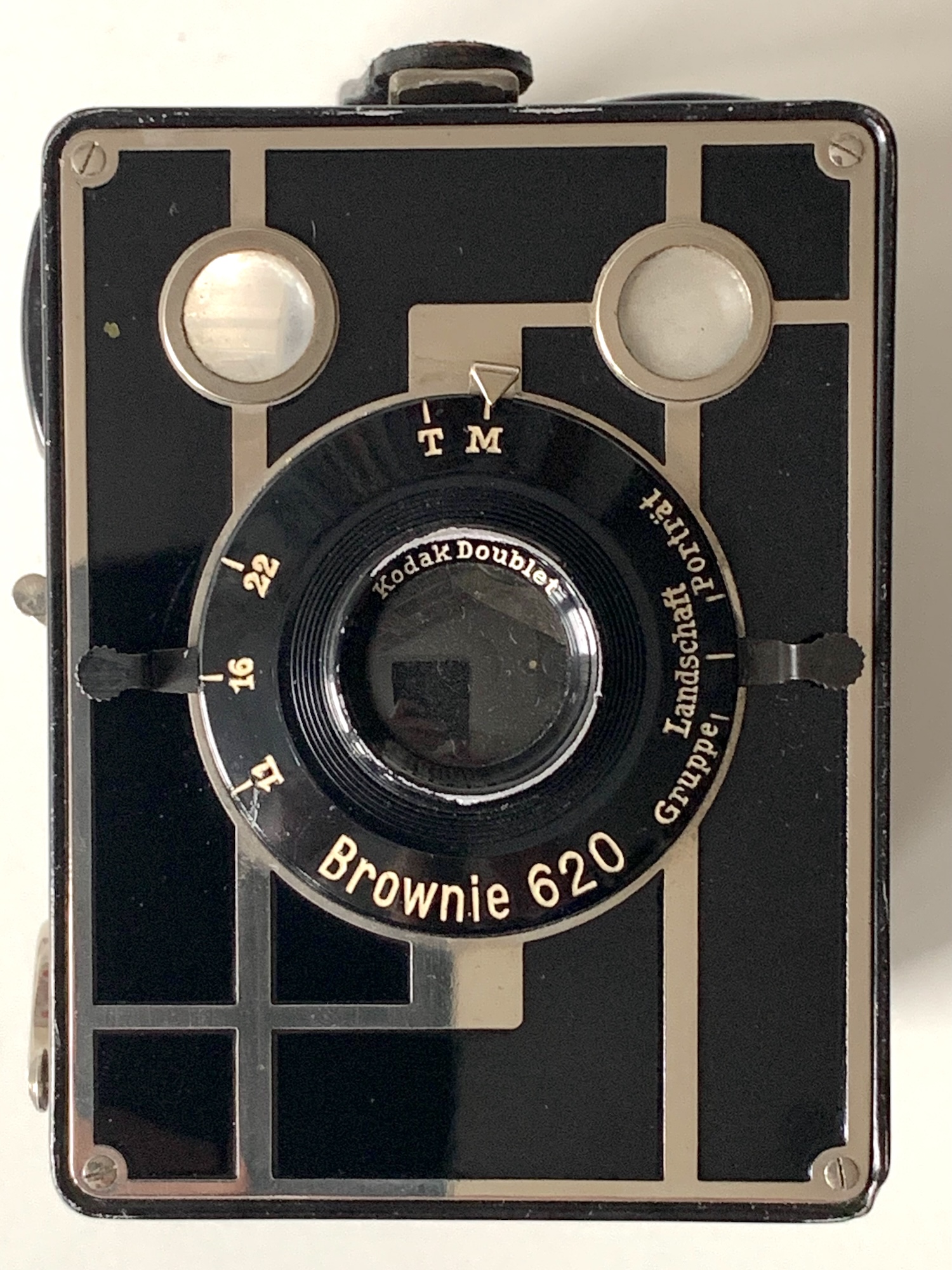 Auffällig ist das art-déco-Design der Frontplatte; es besteht eine gewisse Ähnlichkeit mit den farbigen Beau-Brownie-Modellen aus Rochester.
