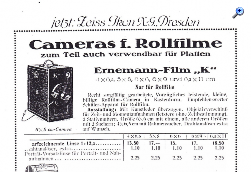 Zum Nachweis der Film K 5x8: Der früheste mir bekannte Beleg stammt aus der Liste Nr. 1450 vom Dezember 1926 (interessanterweise tatsächlich 5x8, sonst heißt das Format bei Zeiss Ikon 5x7,5...):