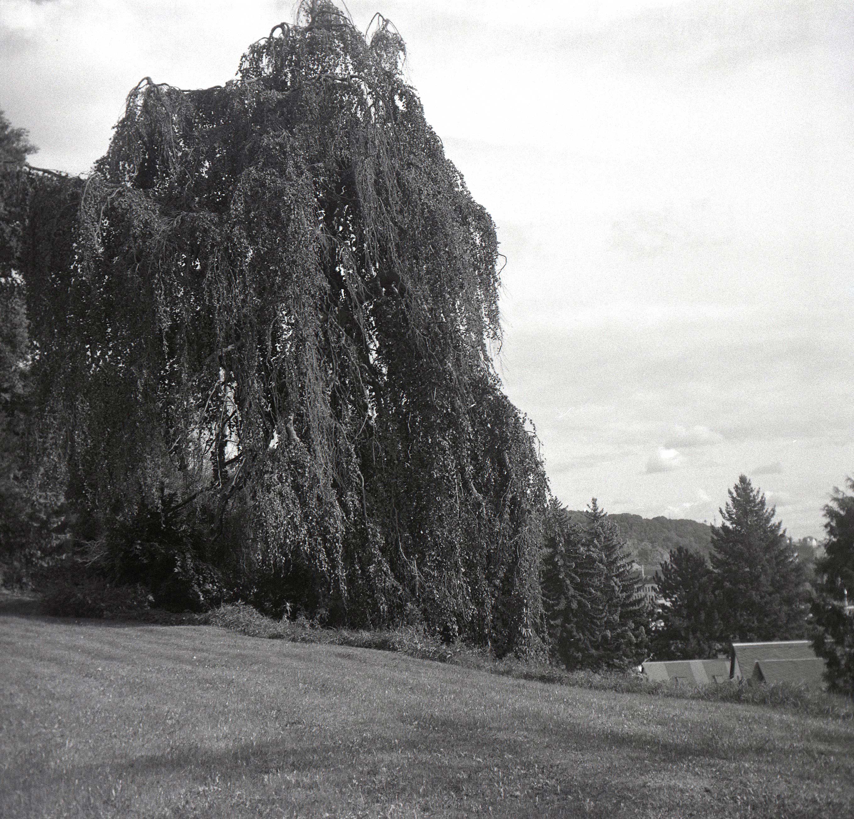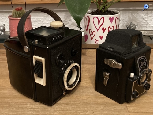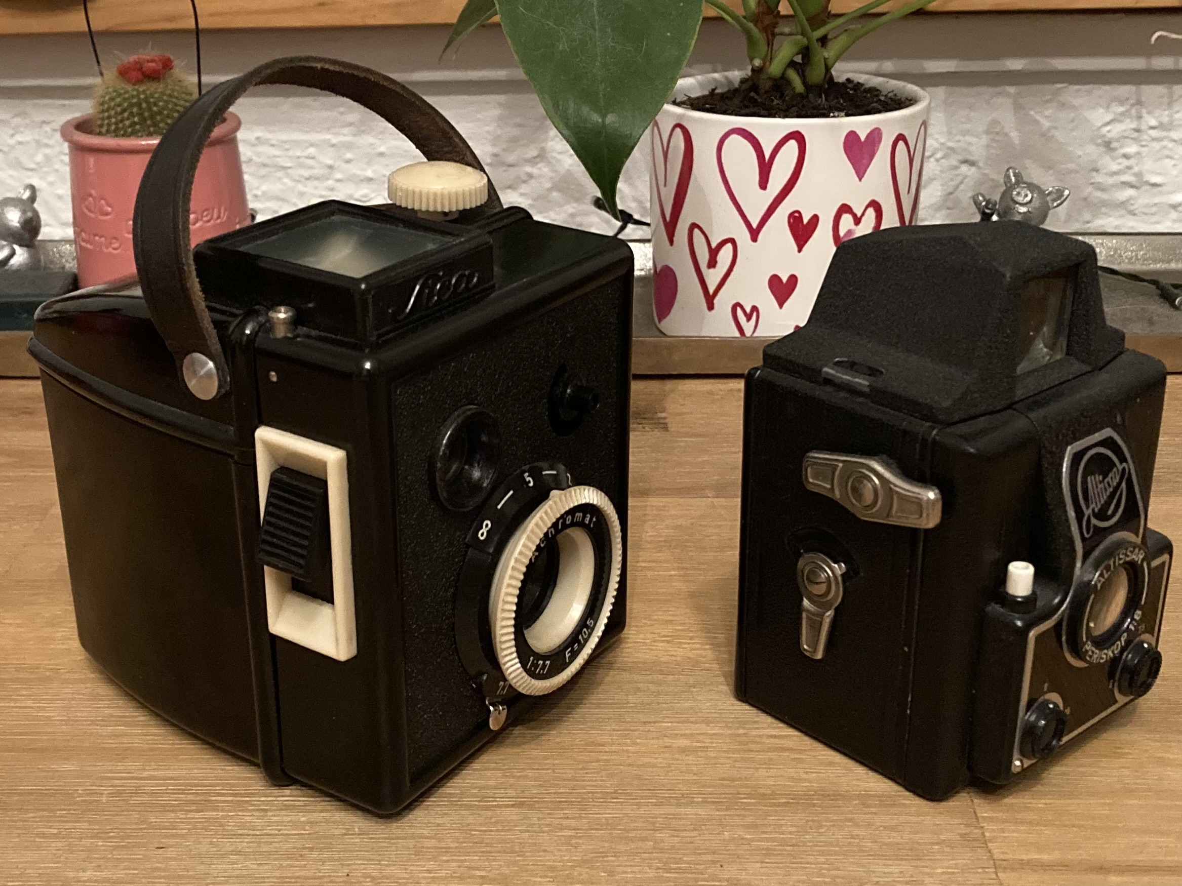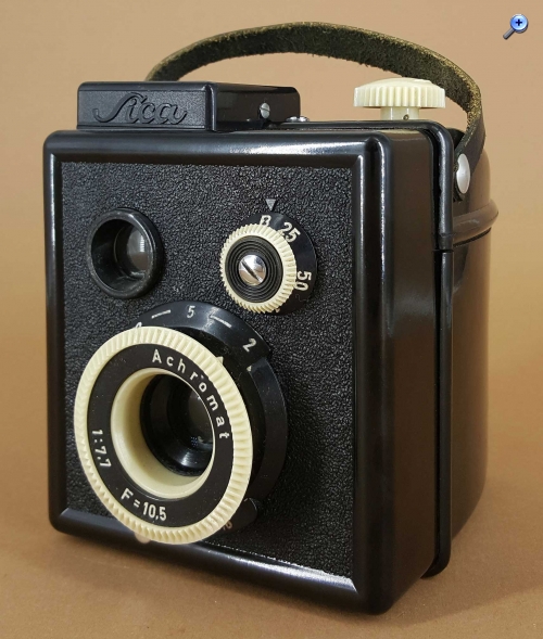Zur Kamera: Das Gehäuse der Sica ist aus Bakelit. Die Kamera besitzt einen einfachen Achromat 1:7.7 (abblendbar auf 11 und 16) mit einer Brennweite von 105 mm und liefert Aufnahmen im Format 6x6 auf Rollfilm 120. Der einfache Verschluss ermöglicht die drei Momentzeiten 1/25, 1/50, 1/100s und besitzt eine B Einstellung. Die Fokussierung erfolgt dreistufig (durch gleichzeitiges Drücken und Drehen am Objektiv) mit den Fokusstufen 2 m, 5 m und unendlich. Das rote Filmsichtfenster besitzt einen Schwerkraftverschluss, der durch entsprechende Neigung der Kamera geöffnet werden kann.