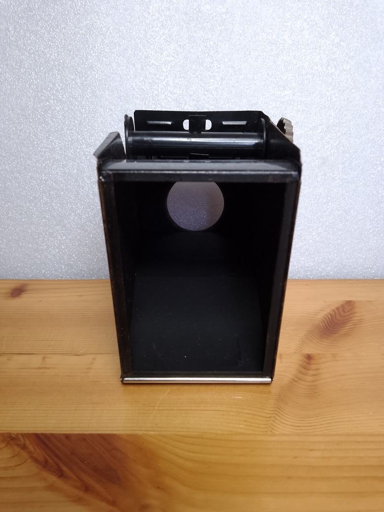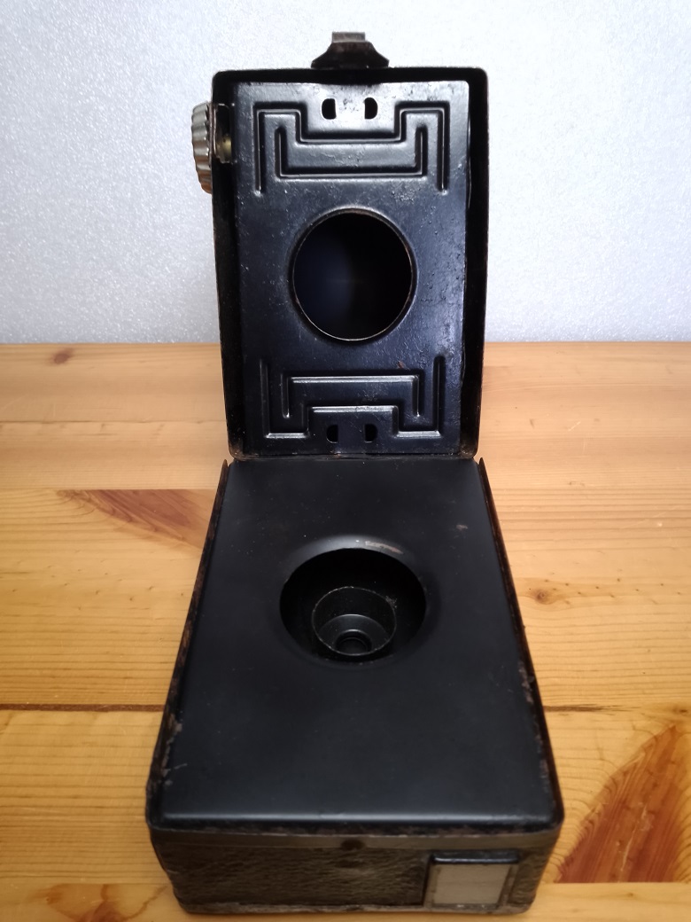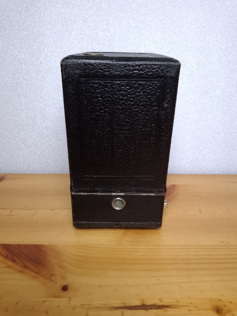 heute einmal eine Box-Kamera mit viel Patina, die sicherlich auf ein bewegtes "Leben" zurückblicken kann.