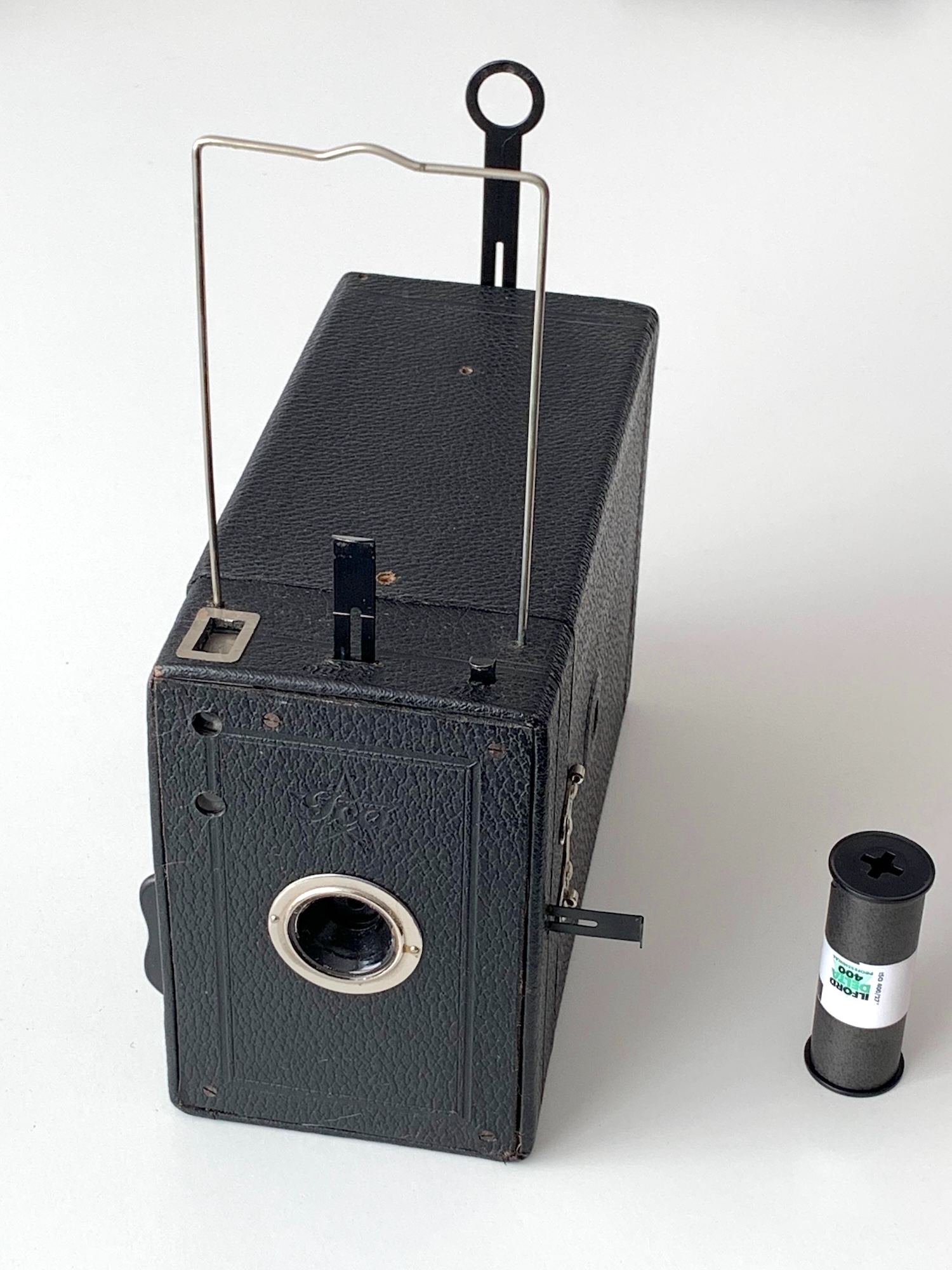 zur Leipziger Frühjahrsmesse 1924 stellte die Ica AG ihre erste Rollfilm-Box vor, die „billige Rollfilm-Kamera Onix für sechs Aufnahmen 6x9“, wie es in einer kurzen Ankündigung der Photographischen Industrie heißt. Für Hans-Dieter Götz (Box-Kameras. Made in Germany, 2002) ist es übrigens die „erste echte deutsche Box“ (S. 11), weil er die Ernemann Film ‚K‘, bei der es sich um „Kastenkameras in Holzbauweise“ in „feinster Schreinerarbeit“ handele, nur als Vorläufer ansieht.