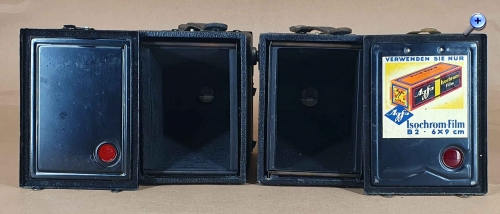 Roll-Film-Kamera   Herstellprogramm   Vergleichsverfahren   Photographischen   zusammengeschustert   Schleuderverschluss   Herstellungszeit   zeitgenössisches   Rollfilmboxen-Liste   Tharandt   Rotationsverschluß   Spiegelreflexkamera   Holzplattenkameras   Rückwandverschluss   Agfa-Verwandtschaft   Fertigungstiefe   Verkäuflichkeit   Metallbearbeitungsmachinen   Rollfilm-Boxkamera   Vergleichsbilder