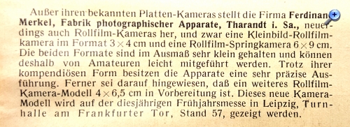 ich denke, betreffend der Fertigungstiefe bei Merkel in der ersten Hälfte der 1930er Jahre liegt noch einiges im Dunkeln. Die folgende Meldung aus der Photographischen Industrie vom Februar 1932 gibt aber einen kleinen Einblick: