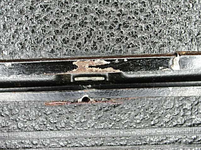 Man kann den Tragriemen durch das Lösen der Nieten, die an dem alten dran sind und Schlaufen formen, erneuern, während bei mir dafür das Ausbohren der Nieten im Kamerakörper nötig wäre, eine davon ganz hinten - problematisch, wie unlängst anhand der Öffnung einer Altissa 6x6 von uns diskutiert. Und meine Tengor hat spezielle mit einem schmückenden Kopf aussen.