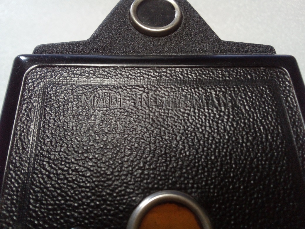 die Kamera gibt es mit und ohne Blitzanschluß. Die hier gezeigte Kamera hat keinen Blitzanschluß. Auf der Rückseite "Made in Germany" in der Beklebung.