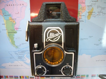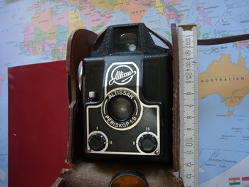 Heute vom Flohmarkt musste ich diese kleine Altissa 6 x6 Format Kamera einfach mitnehmen.Für 7.-Euro erschwinglich. Auch noch mit Original Tasche.