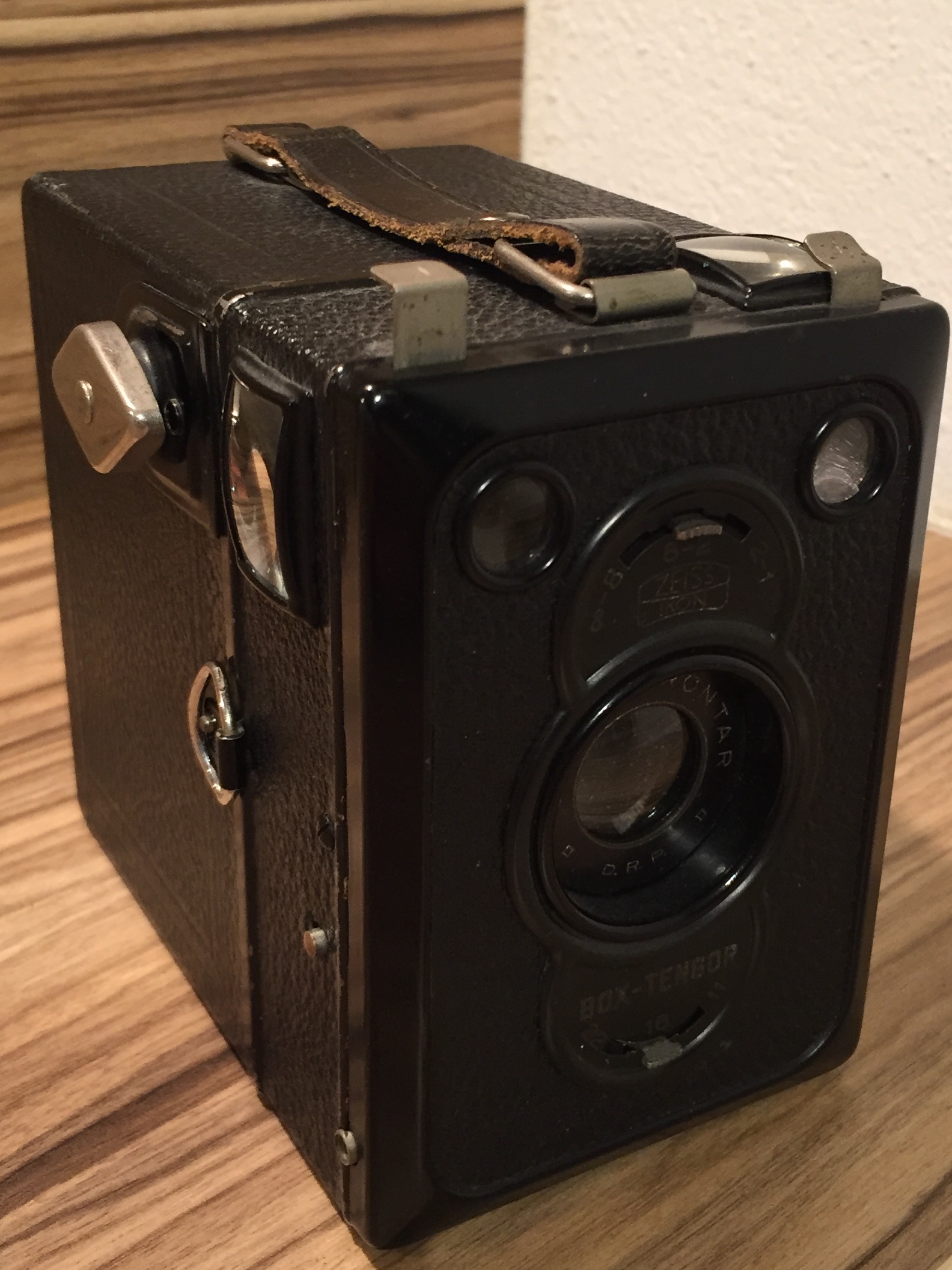 Es handelt sich um eine frühe Zeiss Ikon Box, eine der vielen Varianten der früheren Goerz-Tengor-Boxen nach der Eingliederung von Goerz in Zeiss-Ikon.
