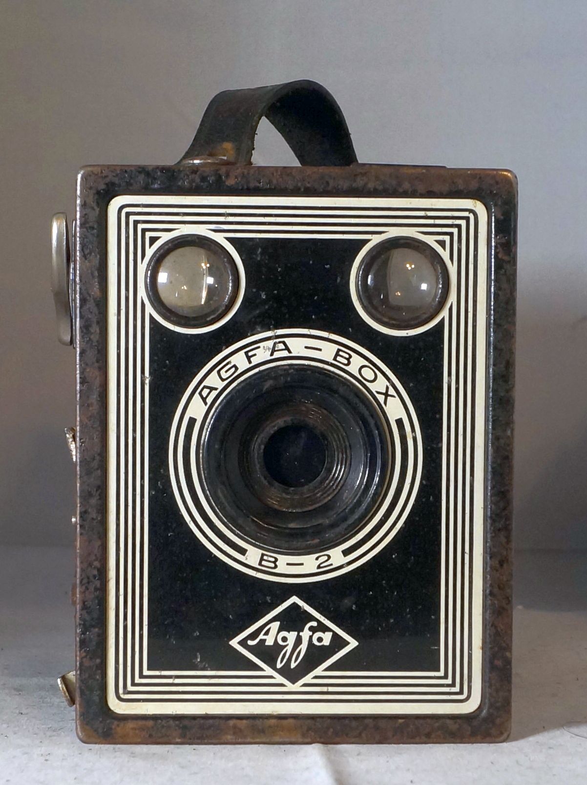 Hallo, dann will ich mal weitermachen mit den Agfa Boxen, im Titel stehen zwei Boxen weil die Box 4 und 94 fast identisch sind, die Front ist gleich, beide Haben den B-2 Schriftzug , beide haben zwei Verschlusszeiten, bzw. eine Verschlusszeit und B, beide haben die Möglichkeit den Auslöser für Langzeitaufnahmen zu arretieren, von vorn ist der einzige unterschied das bei der Box 4 noch eine zusätzliche Scheibe vor der Linse sitzt, selbst das Baujahr, 1937, ist gleich, was nahelegt das die Box 4 quasie das "Luxus" Modell war.