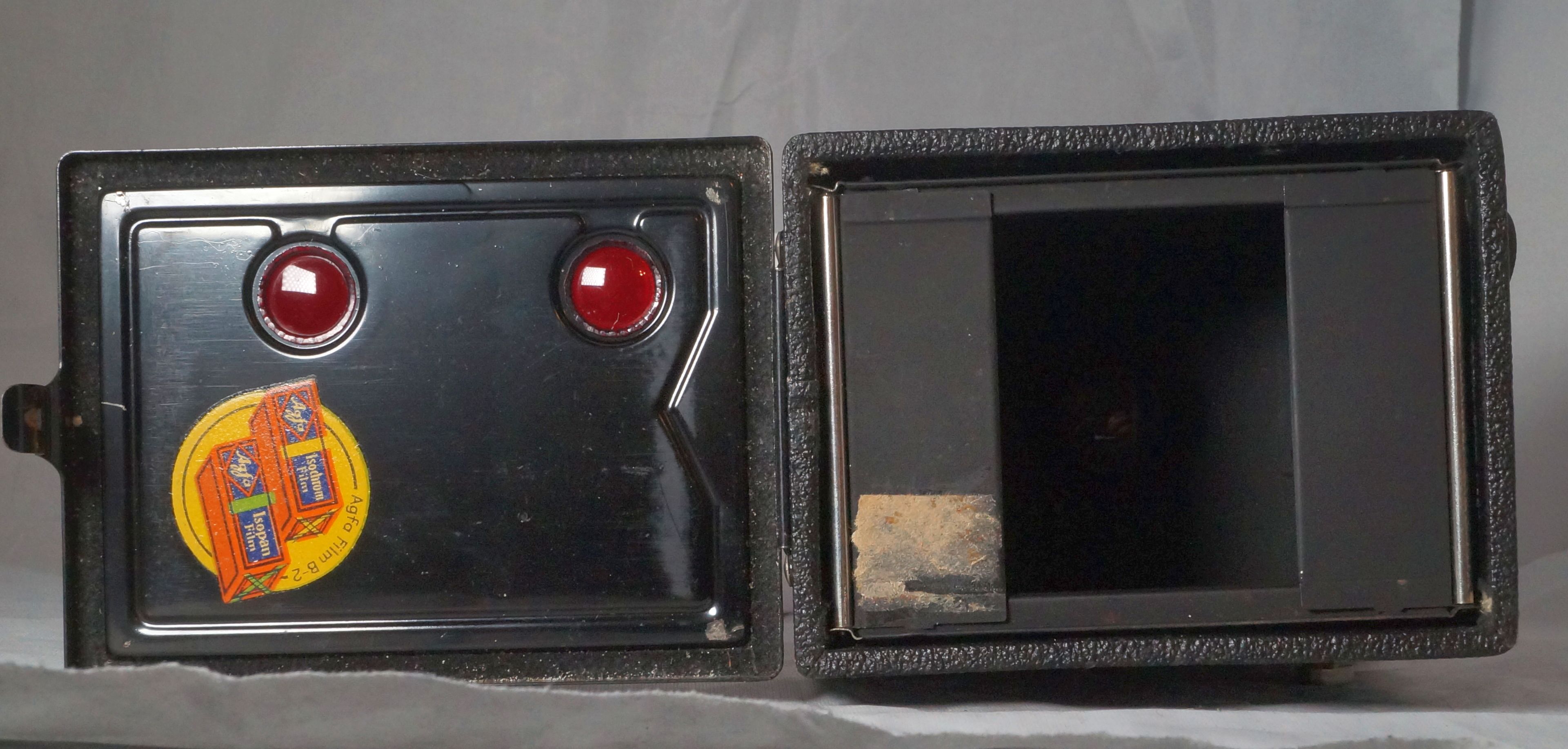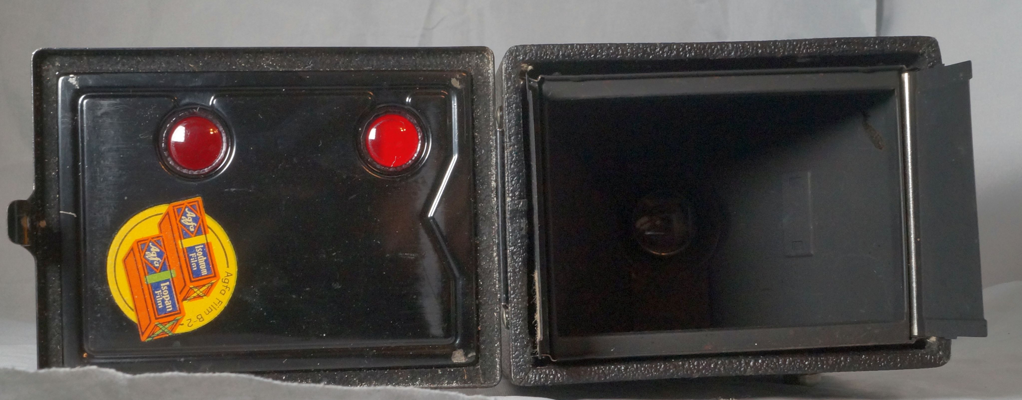 Der Unterschied wird erst sichtbar wenn man sie herumdreht, denn die Box 4 hat zwei Sichtfenster, ist als für Zweiformat ausgelegt, 6 x 6 und 6 x 9, um das Format umzustellen muss man am inneren Teil zwei Blechplättchen umklappen, um die Belichtungsfläche zu reduzieren. Auf jeden Fall zwei interessante Boxen. Und ich denke es ist, da sie im Vergleich am interessantesten sind, gut sie in einem Tread vorzustellen.