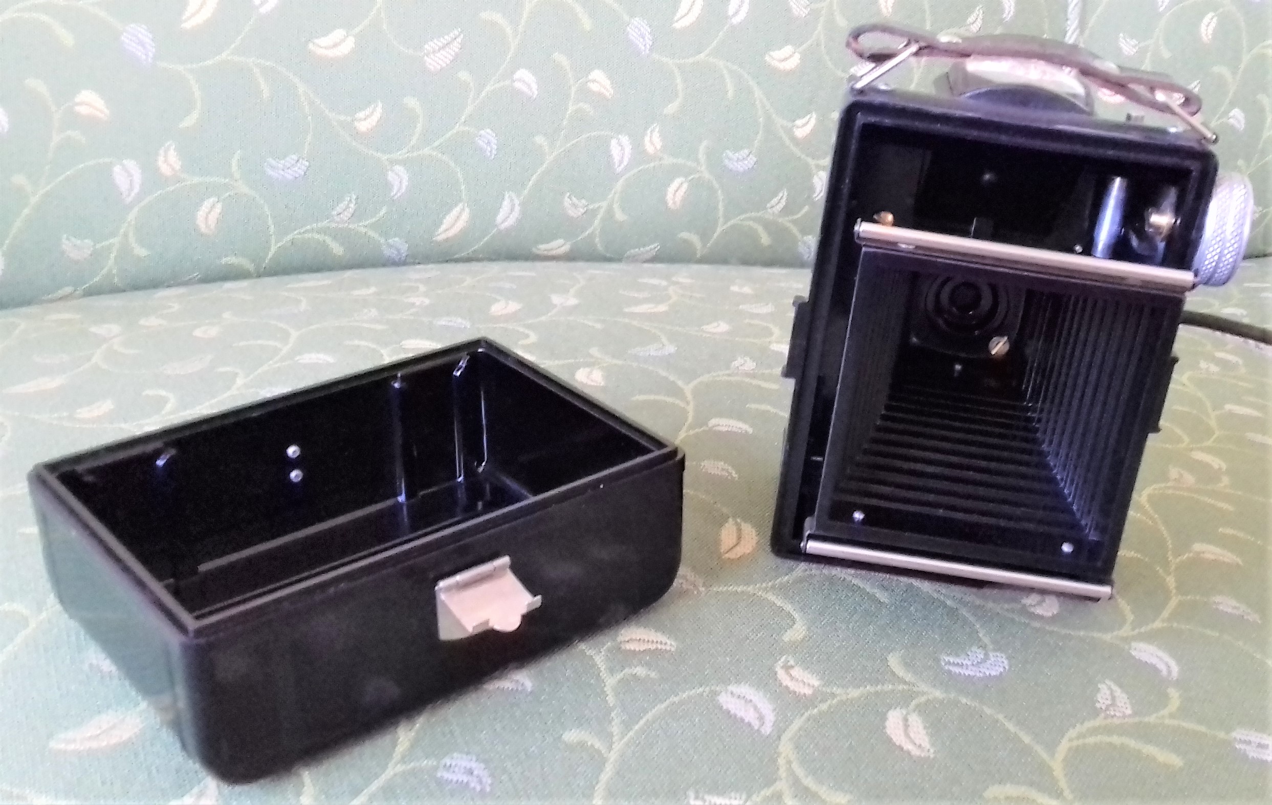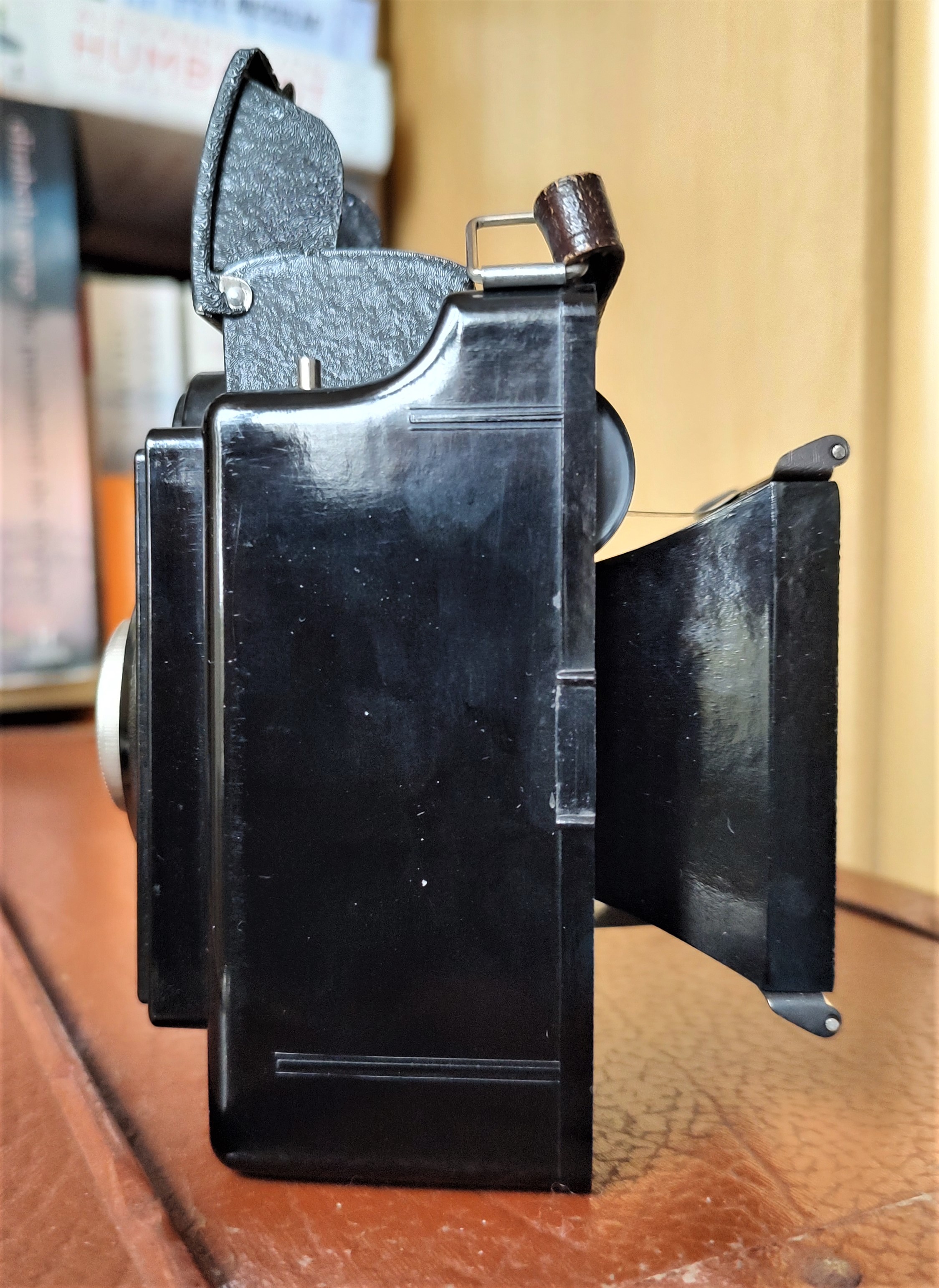 das ist eine feine Box, die schon einen Hauch von zweiäugiger Spiegelreflex-Kamera an sich hat. Man sieht beide Modelle nicht oft. Ein Vorteil des quadratischen Filmformats: Man ersparte sich den sonst bei Boxen üblichen zweiten Winkelsucher.