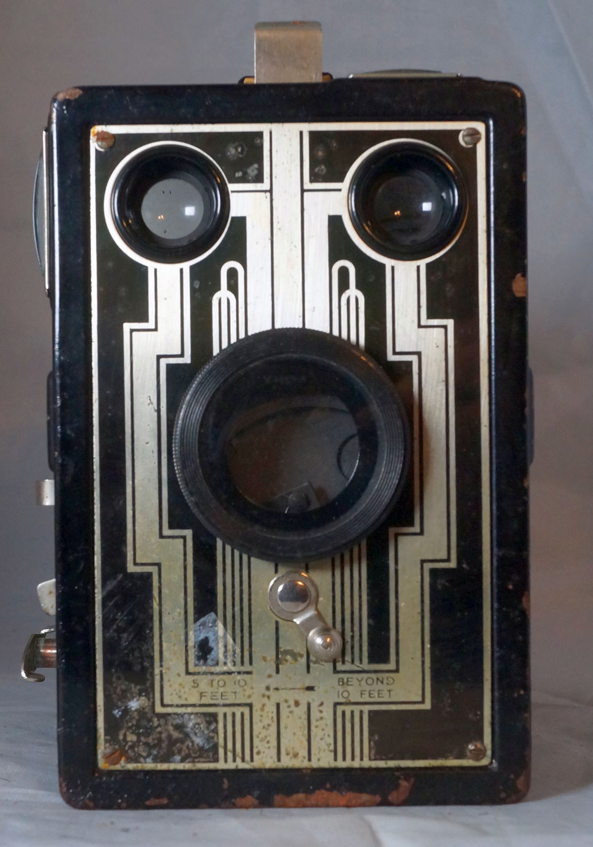die "goldenen Jahre" der Rollfilmboxen fiel teilweise in die Art Deco Kunstrichtungsjahre, grob die Zeit 1915 bis 1940. Ähnlich wie das Art Deco auch beispielsweise bei den damaligen Rundfunkgeräten *** eine wesentliche Designrolle spielte, ist das bei vielen Box-Kameras ebenso. Allerdings zeigen derzeit die meisten Rollfilmboxen hier im Forum keine markanten Art Deco Ansichten....