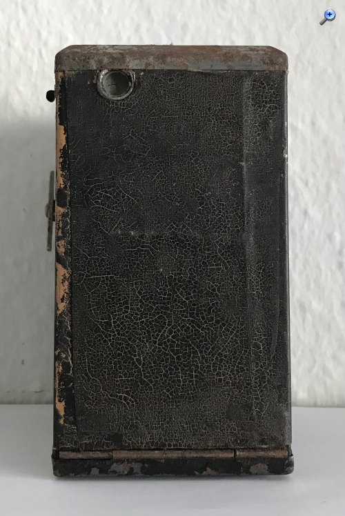 die Ortsherkunft der Box Reichenbach im Vogtland weist ja auch vielleicht eher auch den Großraum Sachsen hinsichtlich des eigentlichen Herstellers hin. Interessant ist die weiche Einwölbung des Objektivbereichs und der (auf der Frontseite) Randstruktur mit Blech-Einblendung der Sucherobjektive. Habe ich in dieser Kombination noch nicht gesehen.