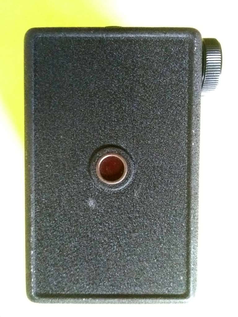 Das große, brillante Sucherbild macht den Reiz der Braun Imperial in der 6x6-Version aus. Unten der einfache Clip zum Öffnen der Rückwand. Einen ähnlichen Sucher findet man bei den Lindar 6x6 Boxkameras aus derselben Zeitperiode. Eine Quelle vermutet, daß Lindar der eigentliche Hersteller sei, aber die Lage des Filmtransportes, die Konstruktion mit herausnehmbarer Filmkammer usw. sind bei ihr und der davon abgeleiteten Kaufhof "Reporter" Box ganz anders. Insbesondere ist auch die Sucherlinse viel kleiner, quadratisch in einer runden Einfassung.