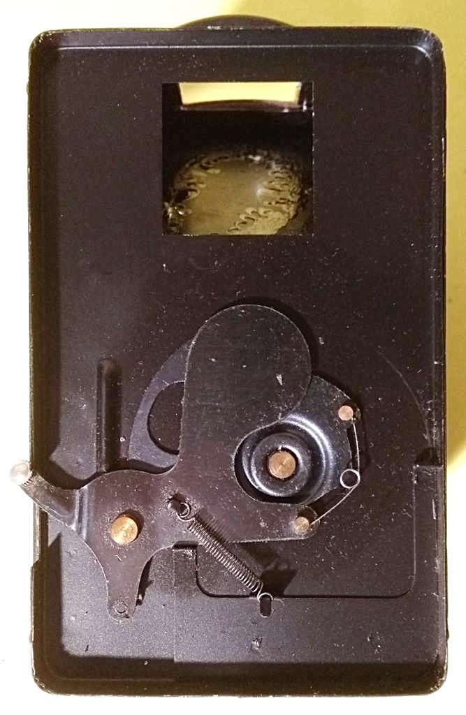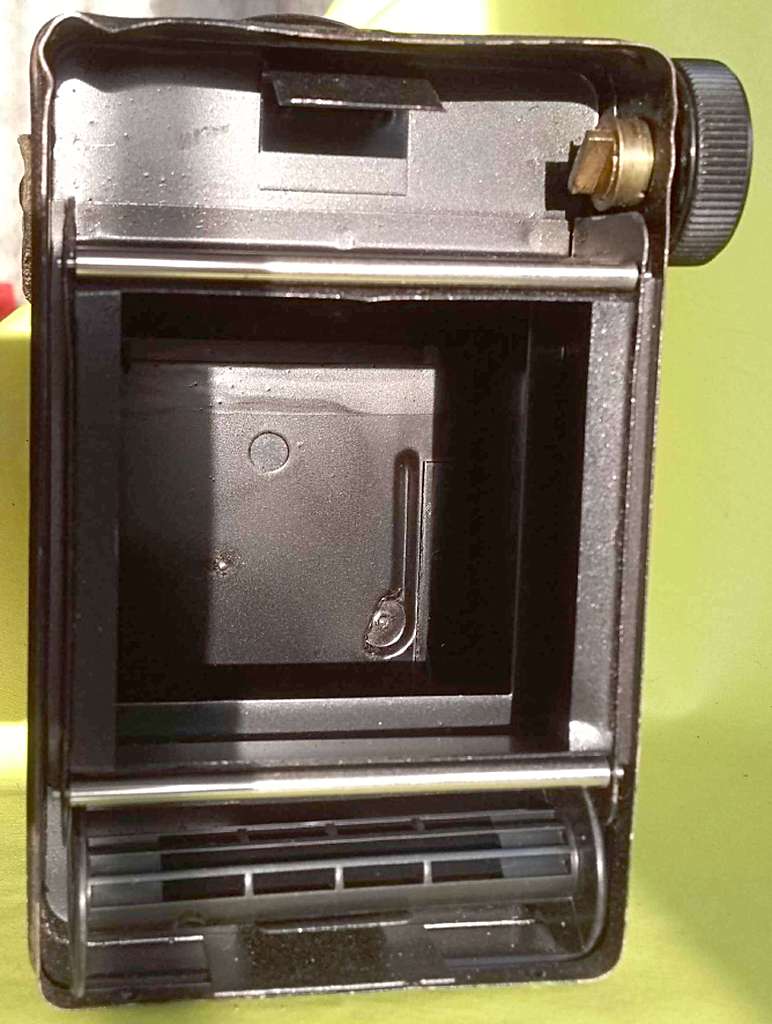 Ansicht der abgenommenen Rückwand von innen. Keine Spur von einer Filmandruckplatte.