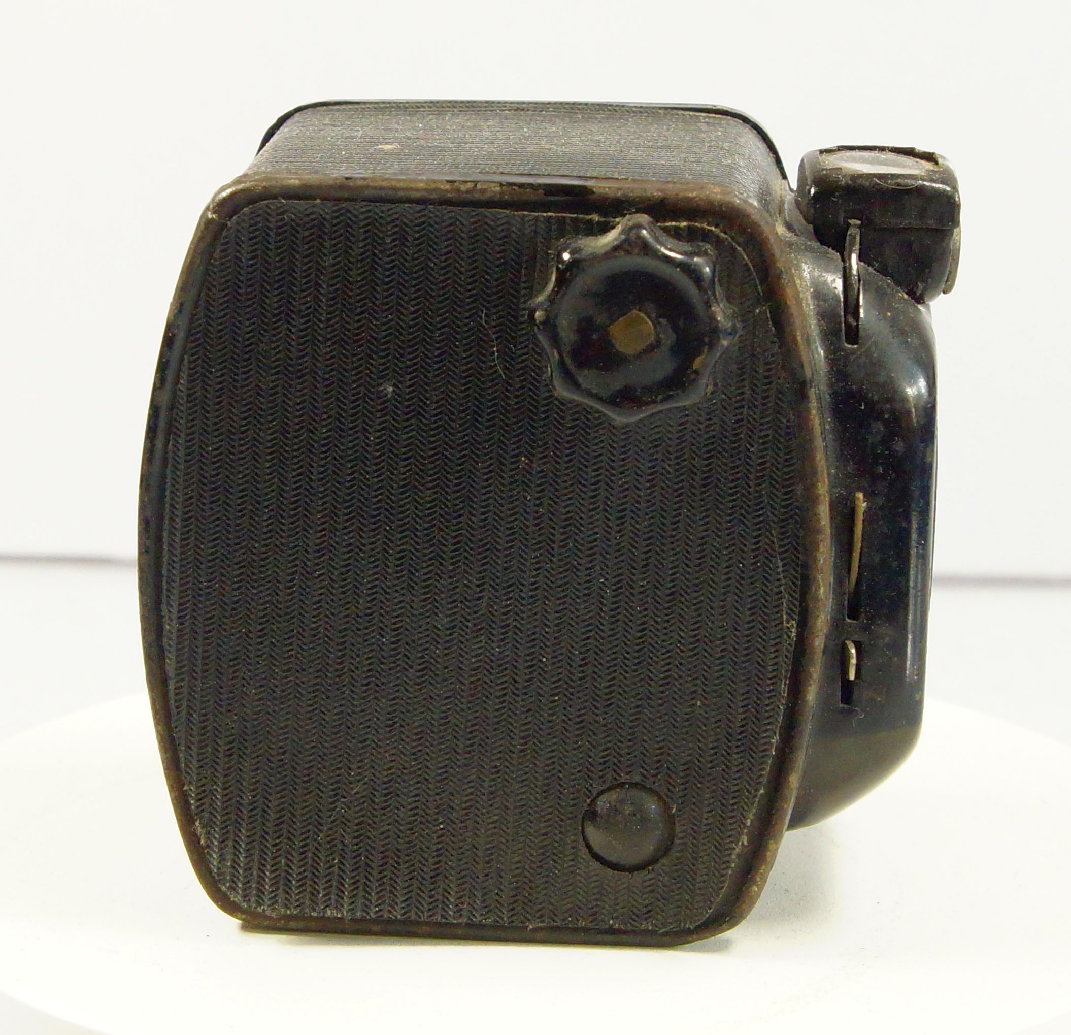 heute stelle ich euch eine kleine Box aus Italien vor, die N. Gabri der Firma ICAF, allerdinsgs benannte sich die Firma 1937 kurzzeitig um in CMF, daher auch das Logo auf der Front. Ab 1946 hieß die Firma dann C.M.F. Bencini . Die Kamera wurde ab 1937 hergestellt, anfangs als N. Gabry, allerdings war das Y der faschistischen Regierung zu "ausländisch" daher wurde es in ein I gewandelt.