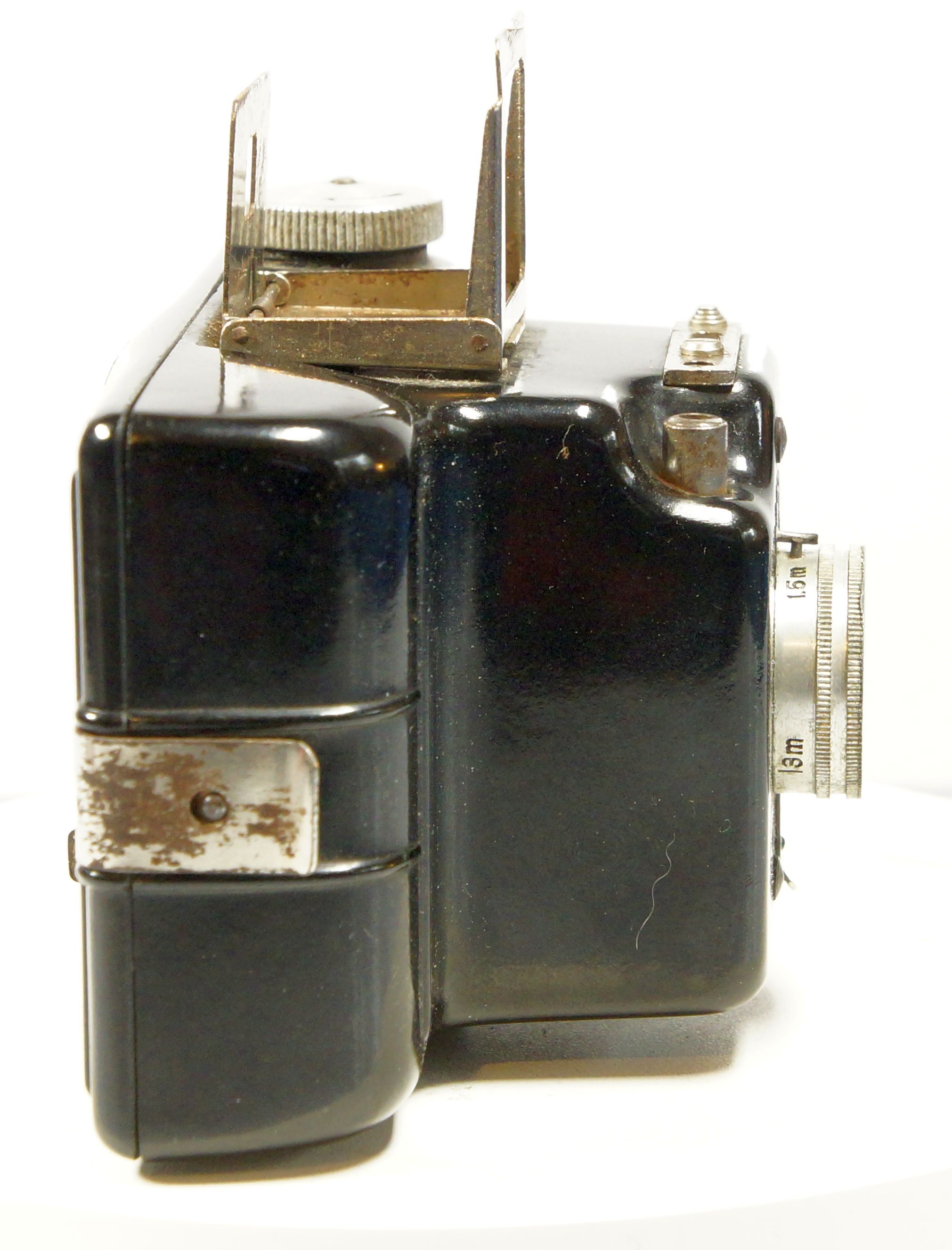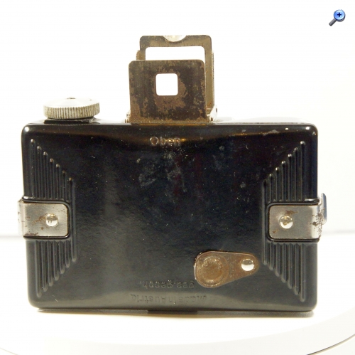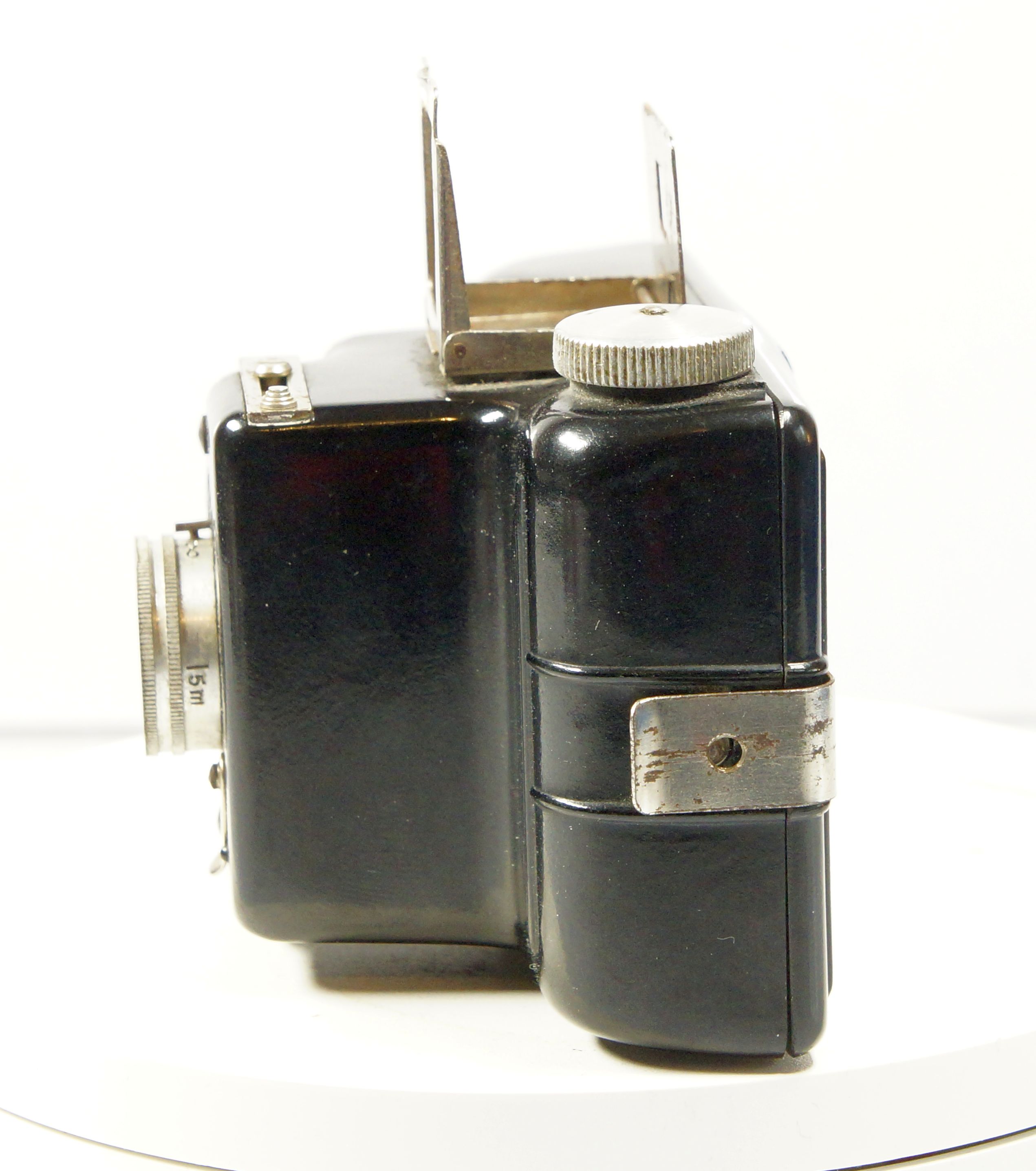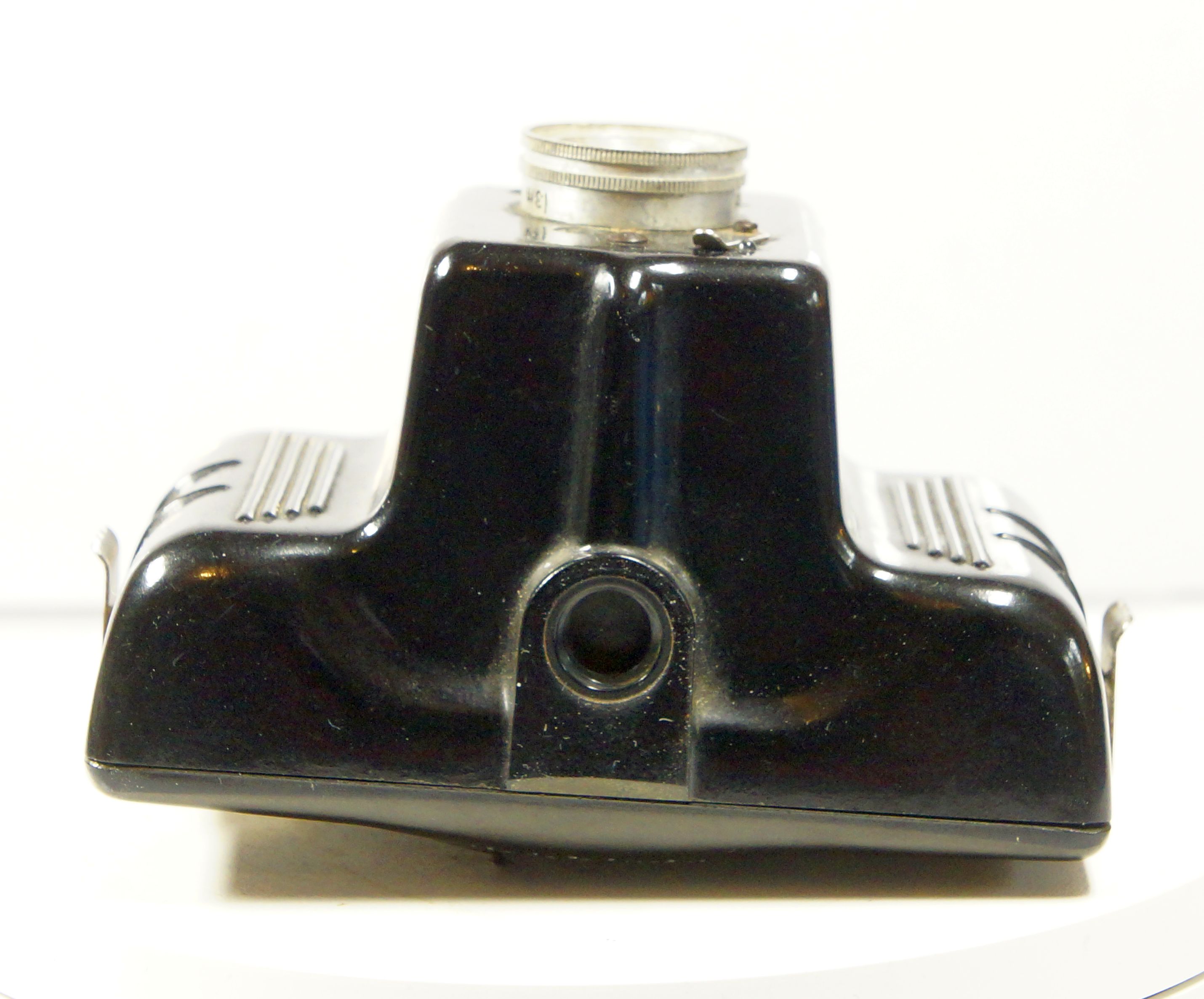 Die kleine Kamera ist aus Bakelit, und erinnert mich von Optik und Aufbau sehr an einige Englische Kameras die ich habe.