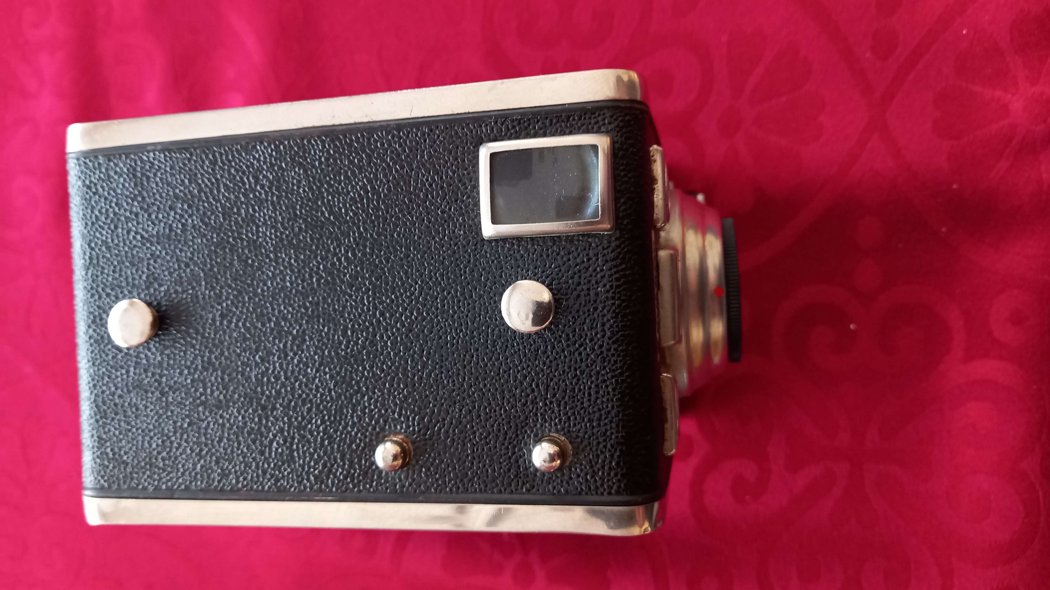 Gevaert Produced : 1951 Classification : Medium Format Body Type : Box Construction : Metal Film Type : 120 Film Width : 62mm Image Size : 6 x 9 cm No. of Images : 8 Lens Type : meniscus Focal Length : 110mm Focus Type : Variable Focal Range : 1.5m - inf. Aperture Type : Multihole Apertures : f/8, f/11, f/16 Shutter Type : Rotary Shutter Speeds : T, I*(1/100s) Size (w x h x d) : 90 x 110 x 126 mm Weight : 570g