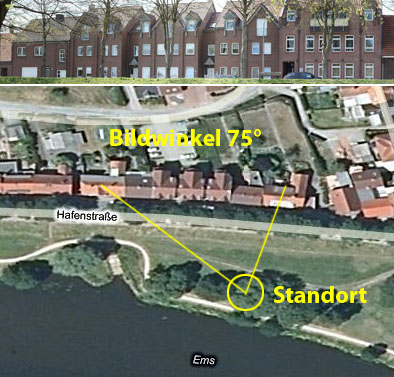 Mit einem Bildwinkel von 75° ist die Aufnahme möglich. Da brauchst du sicher kein Fischauge.