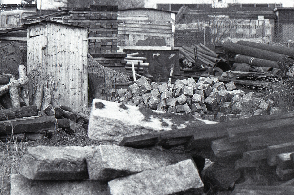 eigentlich wollte ich nur zwei Photos (Negative) einscannen, die ich mal vor Jahrzehnten aufgenommen habe. Die Photos zeigen eine etwas skurile Szene am Rande des Berliner Westhafens in schwarz-weiß. Dabei fiel mir auf: