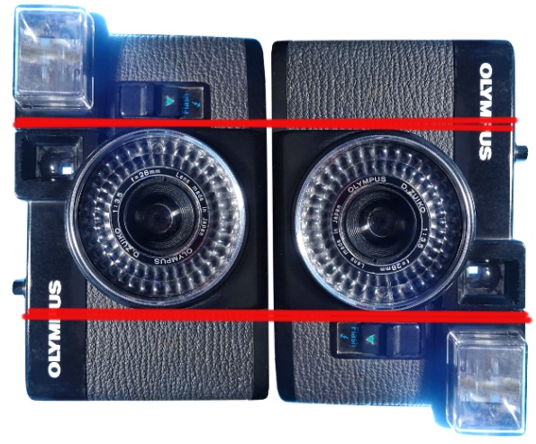 Allerdings musste eine Kamera etwas vertikal verschoben werden, um horizontal auf gleicher Ebene zu liegen. Die Kamera ist nämlich nicht mitten-symmetrisch aufgebaut.