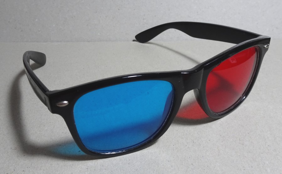 Es gibt auch Rot-Cyan-Brillen. Leider gibt es bei den Anaglypen-Fotos auch unterschiedliche links-rechts-Farben. Da kann es dann schon mal auch gewisse Fehlfarben-Ergebnisse geben.