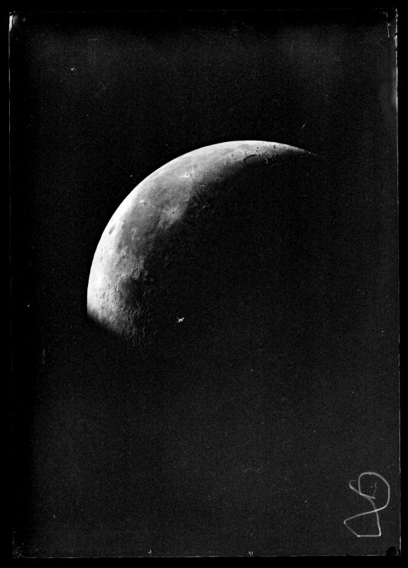 Hallo, ich habe ja mal etliche Platten erstanden, die wurden jeweils ind den alten Kisten in denen auch die unbelichteten waren verwahrt, das war wohl üblich, waren ja auch etwas schwerer. Naja in dem letzten Fall war es sogar eine wirklich interessante Aufnahme, ein Bild vom Mond, aber wahrscheinlich mit einer Vorsatzlinse aufgenommen, denn die Kamera selbst hatte keine Fokuseinstellung, die Brennweite kenne ich leider nicht, aber ich bezweifle ob man ohne Hilfsmittel den Mond fast Bildfüllend hinbekam.