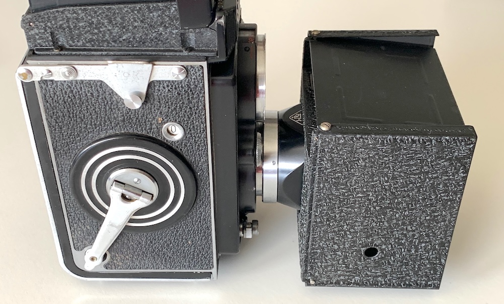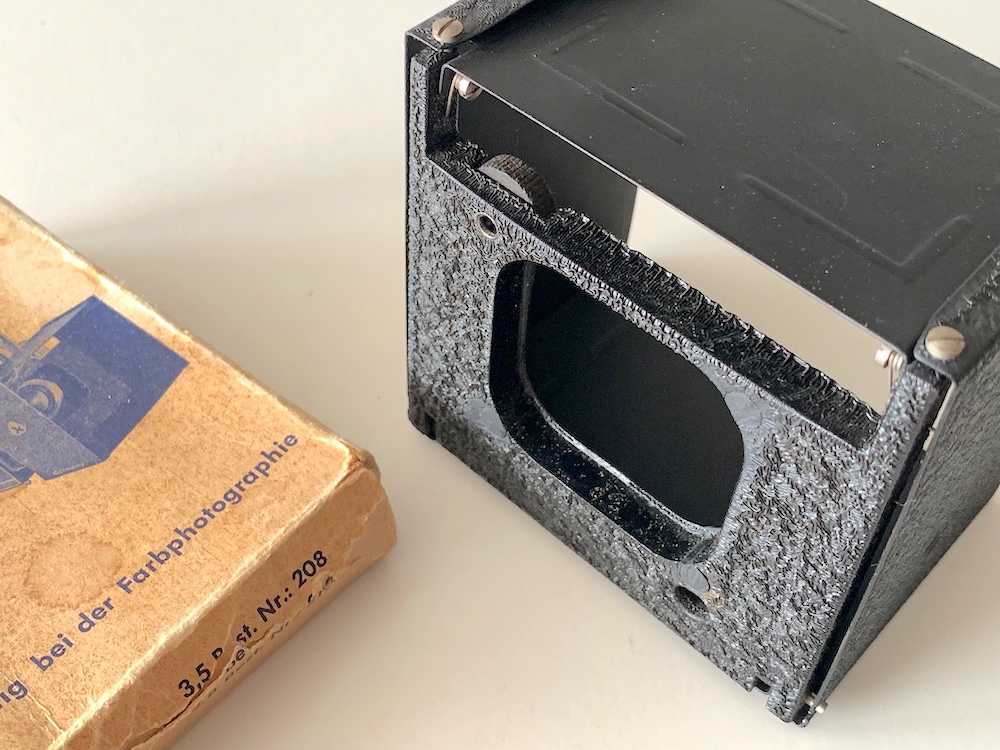 Prochnow zeigt unter PR 349/1das Exemplar eines anderen Sammlers; anderswo habe ich dieses kuriose Teil noch nicht gesehen. Sonderlich erfolgreich scheint der Absatz nicht gewesen zu sein. Gleichwohl gab es Anfang der 1950er Jahre wohl unter bestimmten Bedingungen tatsächlich noch Streulichtprobleme; das war für Franke & Heidecke auch Anlass, konstruktive Vorkehrungen zu treffen, beispielsweise den gerippten Blendrahmen im Kamerainnern, der 1953 mit der Rolleicord IV eingeführt wurde.