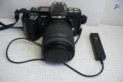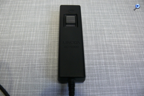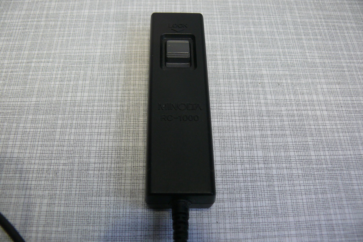 für die AF-Baureihe bot MINOLTA Kabelauslöser an. Einmal den hier gezeigten RC-1000 in der S(hort) Variante mit einem 50 cm langen Kabel für Aufnahmen direkt am Stativ sowie eine L(ong) Ausführung mit einer Kabellänge von 500 cm für die Kamerabedienung etwas abseits des Stativs. Neben der normalen Auslösung konnte die Aulösetaste auch für Langzeitbelichtungen arretiert werden.