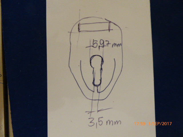 Kopfdurchmesser: 5,97 mm -Steg-Mass Mass: 3,5 mm wo sich der Klip einzieht