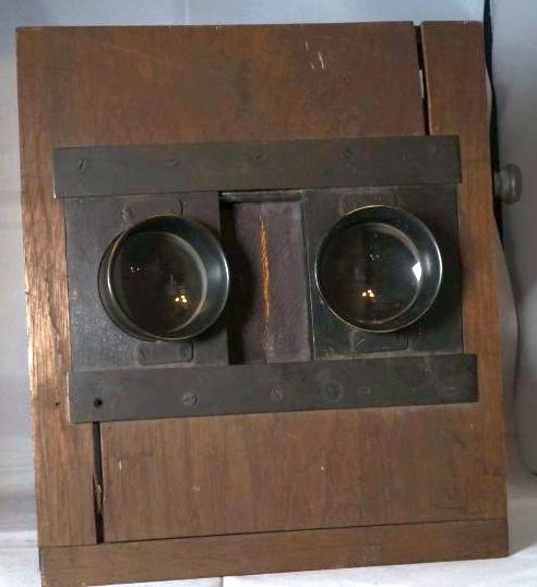 Hallo, Könnte Teil 1 nicht ein selbstgebasteltes Stereo-Betrachtungsgerät sein? Die Linsen sind wahrscheinlich einfache Vergrösserungslinsen, und die schwarzen Einfassungen scheinen als Blendschutz beim Betrachten zu dienen. Gruss Freier-Sascha