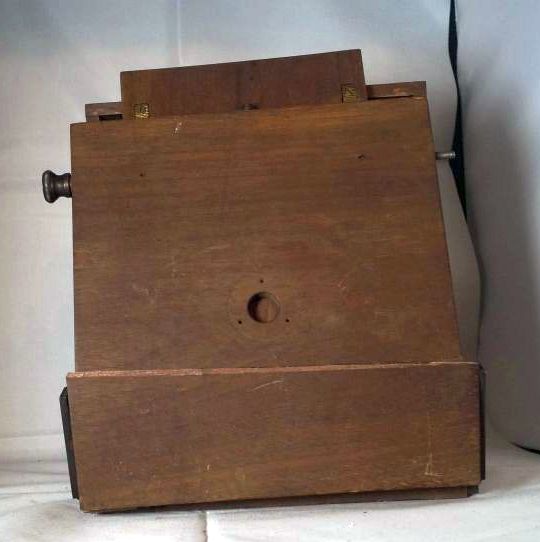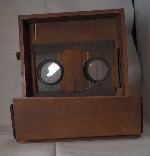 Hallo, Ich habe mal wieder auf ein Konvolut geboten, Ziel war aber diesmal eine Bestimmte Boxkamera die mir noch fehlte. Da aber auch Holzteile dabei waren hatte ich kaum Hoffnung, da sowas immer recht teuer wird, aber ich habe den Zuschlag bekommen, überraschend, also ist jetzt die Zweiformat Box 04 von Agfa meine, ebenso einer Certo pot und eine Minolta XG 2, soweit so gut, die Holzteile sind aber etwas schwerer zu bestimmen, ich werde sie, wie die Minolta und die Certo, wahrscheinlich wieder verkaufen, aber will doch wissen was es ist. Also zum ersten, wie man auf den Bildern sieht sind die Platten teilweise gebrochen, da es aber glatte Brüche sind, währe das mit etwas Leim und Spucke machbar. auch scheint das ding mir nicht vollständig zu sein. Die beiden Augengläser? lassen sich bewegen, unabhängig voneinander, sind also zum durchgucken gedacht und haben einen vergrössernden Effekt, die hintere platte ( an der gebrochenen ) lässt mittels eines Drehknopfes nach oben bewegen, könnte das ein alter Stereobetrachter sein?