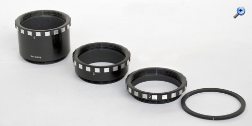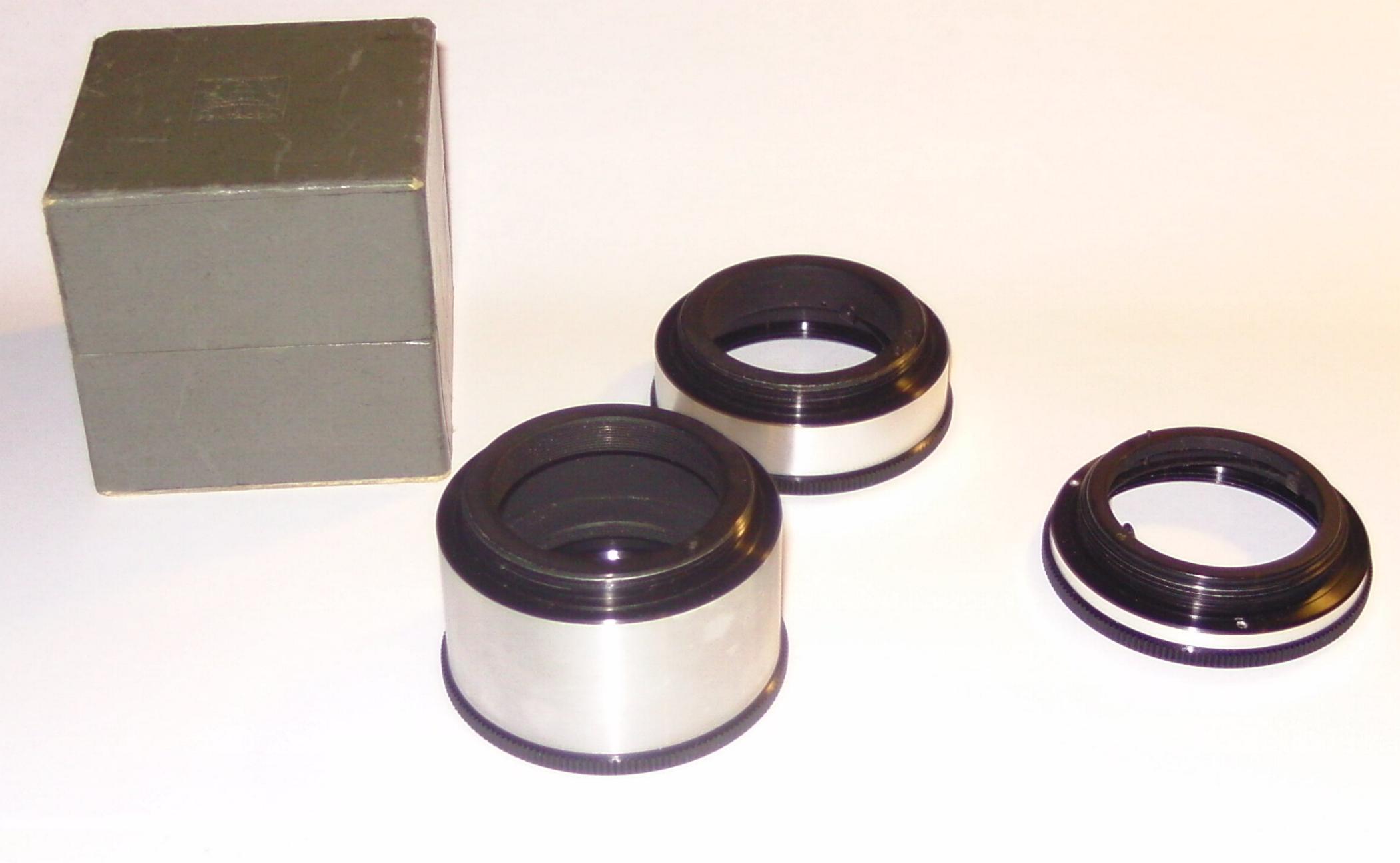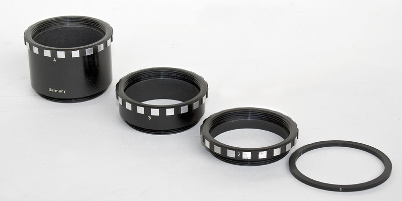 Besonderes: Die Zwischenringe haben keinen Übertragungsmechanismus zur Blendensteuerung von Druck- oder Springblenden. Ring 1 ist nur als Distanzring ohne Gewindeanschluss ausgeführt..