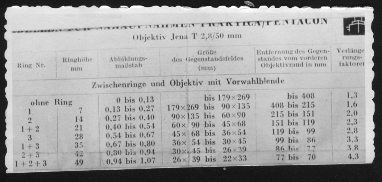 Deine mini-Bedienungsanleitung für die Zwischenringe ist mit Sicherheit eine photographische Reproduktion der Originalanleitung. Da hat jemand wohl gleich die Zwischenringe erprobt. Das Bild wurde mit einer "Bütten-Schneidemaschine" verschönert. Ich besitze noch eine Schneidemaschine mit genau dem gleichen Zackenschnitt aus den 50er Jahren.