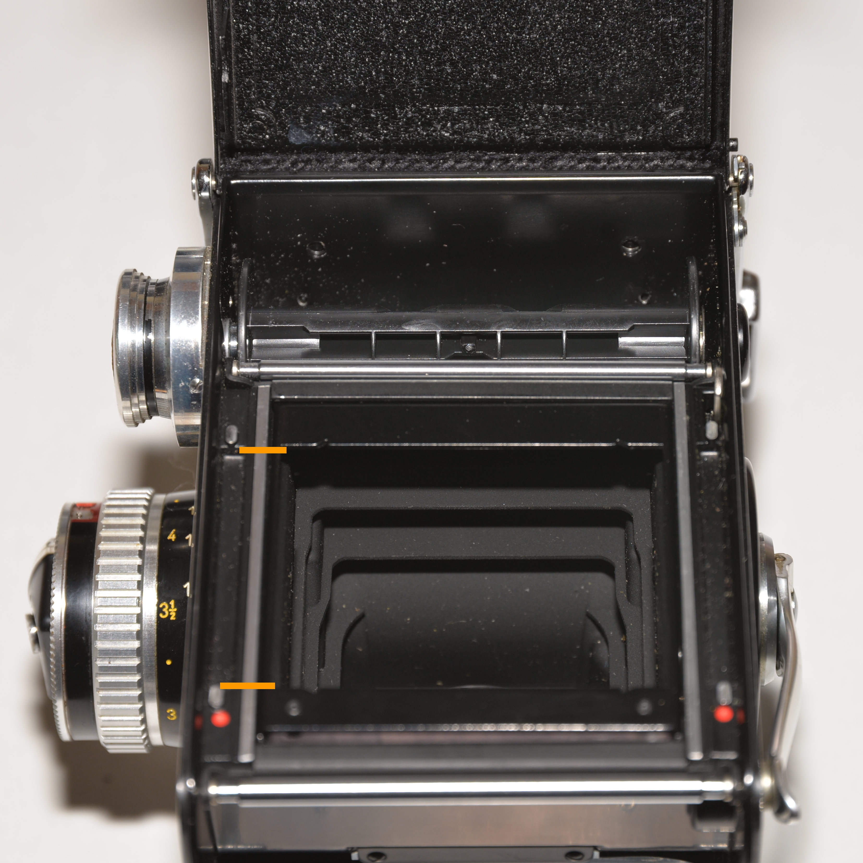 Hier einige Worte zum Maskensatz 16 für die Rolleiflex T, der es dem sparsamen Fotografen ermöglicht im Breitformat 4x5,5cm oder im "Super-Dia" Format 4x4cm sechzehn Bilder auf den 120er Rollfilm zu belichten. Der Vorteil des quadratischen Dia-Formates: Es kann mit fast jedem Kleinbildprojektor vorgeführt werden und ist dabei "durch das größere Format in puncto Brillanz und Farbdichte der Kleinbildkonkurrenz sichtbar überlegen." (Zitat aus dem Rolleiflex Buch von Dr. W. Heering) Doch zunächst zur Montage: