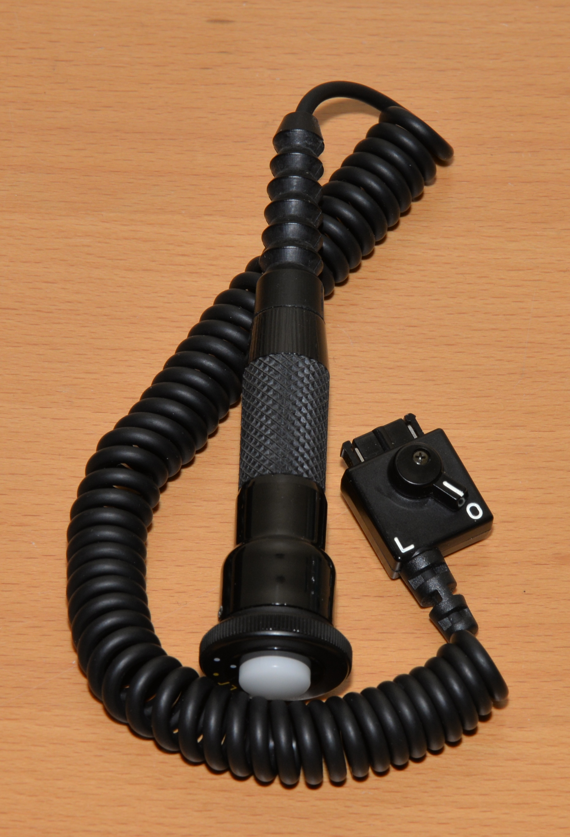Das Zubehörteil ist mit Überlegung konstruiert, eine Sperrklinke verhindert ungewolltes herausrutschen aus der Anschlußbuchse. Der Auslöseknopf ist für lange Zeiten (B) arretierbar.